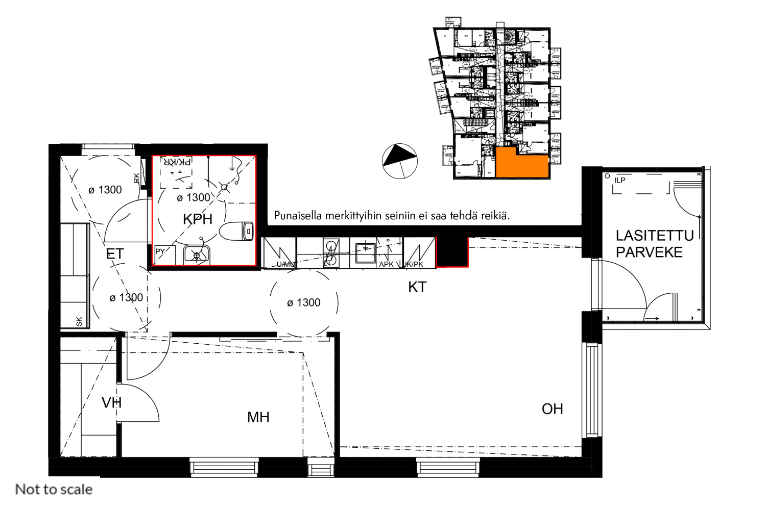 This adaptable one-bedroom apartment boasts a smart and functional layout. With windows facing two directions, light fills the space all year round. In the summer, extend your living area onto the east-facing glazed balcony.