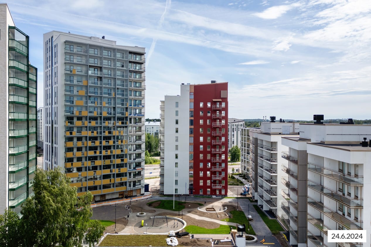 Step into the new residential area of Finnoo in Espoo, home to these eight-floor buildings, perfectly positioned for easy access to transport links. A diverse collection of 136 dwellings spans across two structures, from sleek studio flats to spacious four-bedroom family abodes.