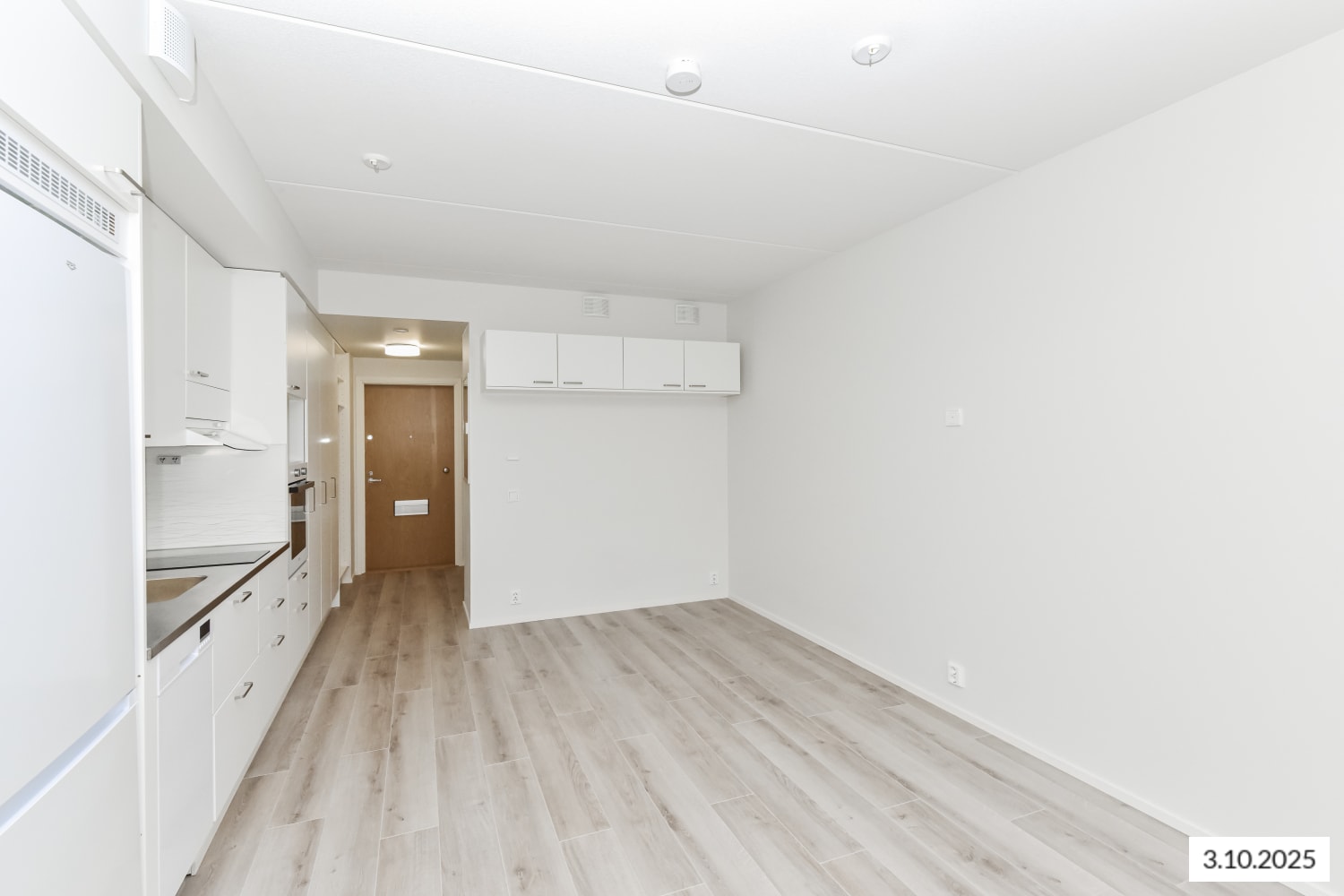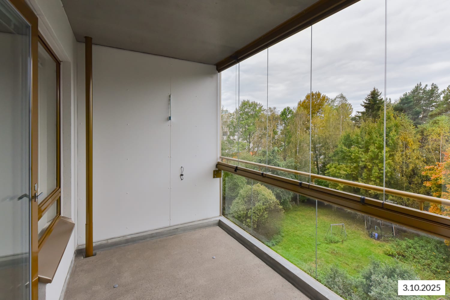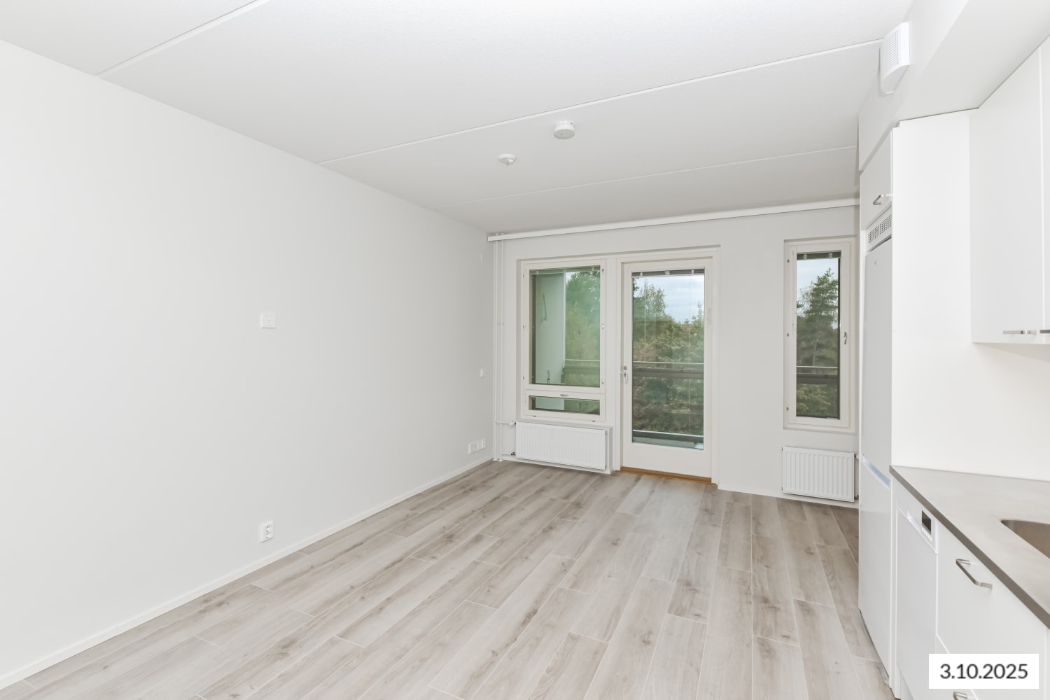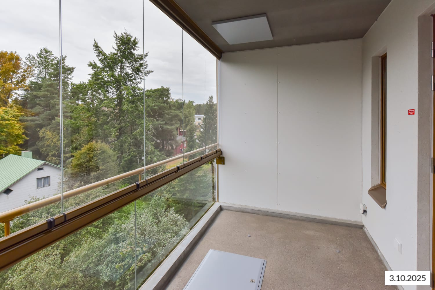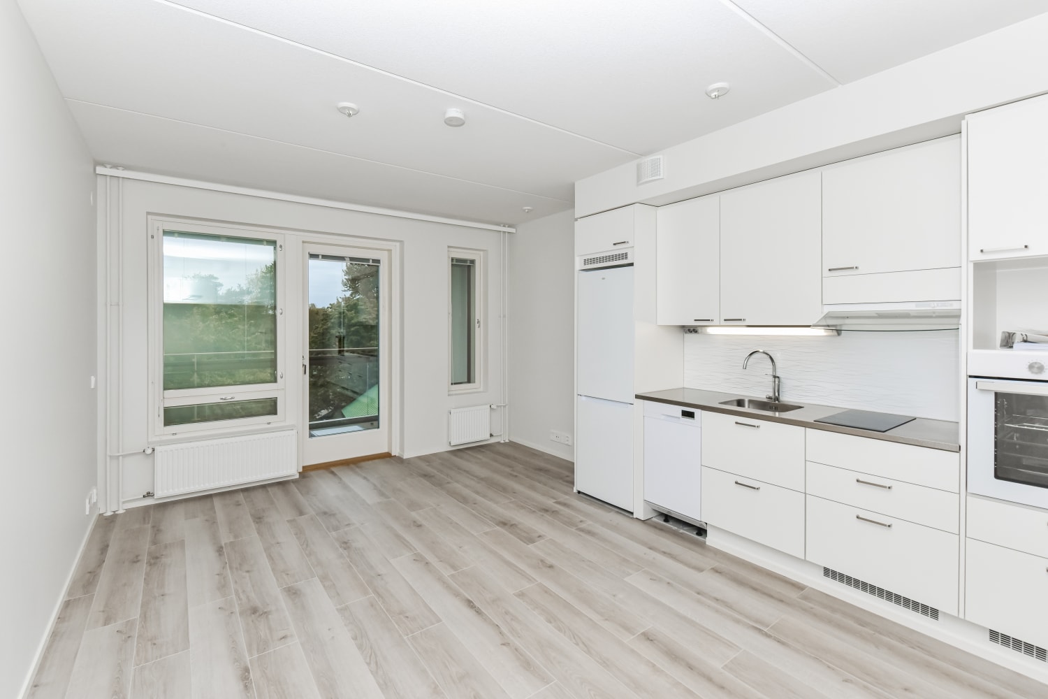 This practical studio apartment is easy to enjoy, as everything necessary is within reach. There is storage space both in the entrance hall and in the living room wall cabinet. In the summer, you can enjoy breakfast on the spacious glazed balcony. Views from this compact little home open to the west.