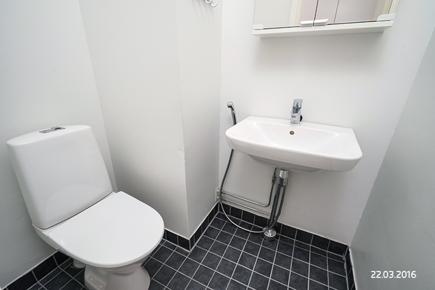 The separate kitchen has room for a dining table cosily by the window. The bathroom has space for a washing machine.