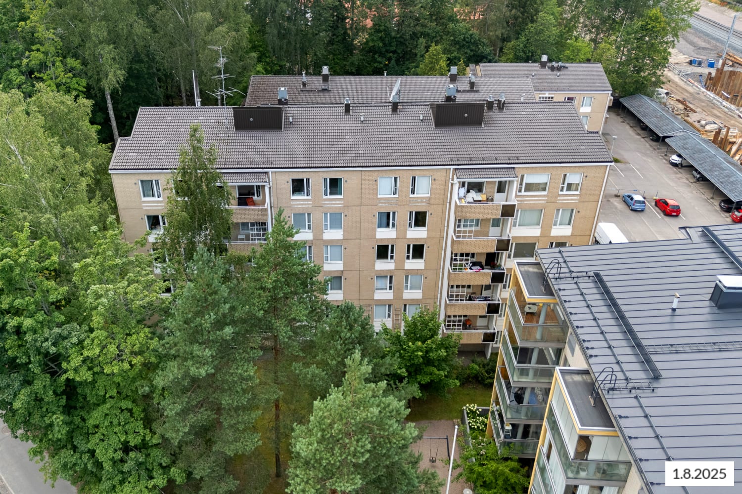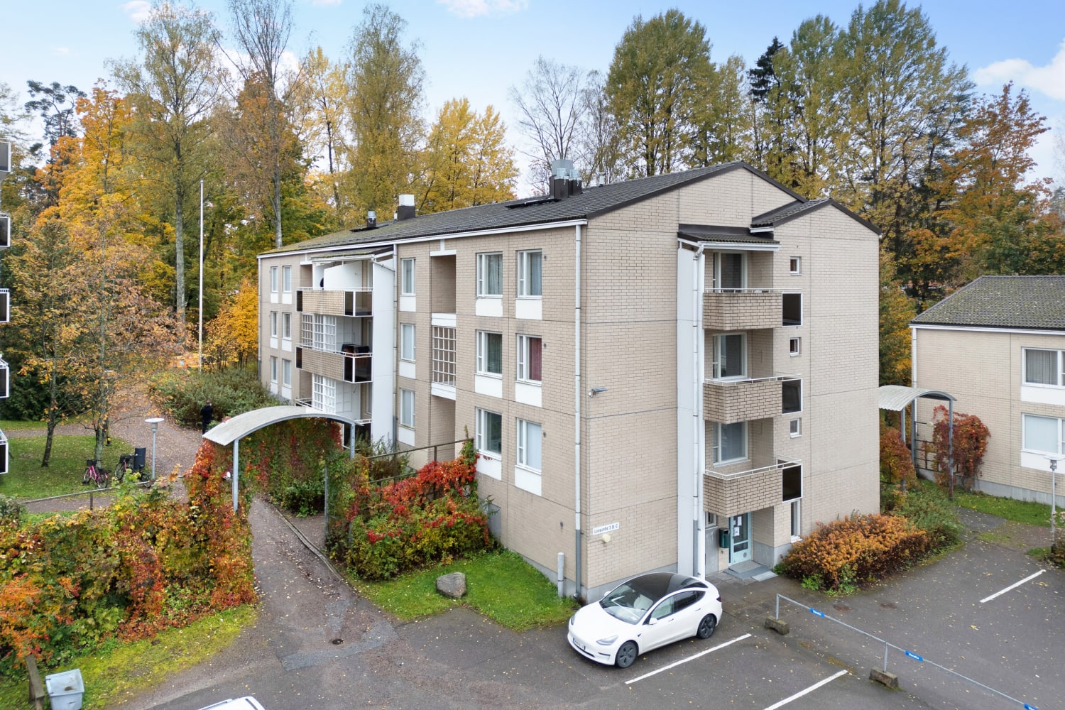 These apartment buildings well situated just a short walk from Kilo commuter train station are surrounded by pleasant and sheltered grounds. The two-storey building has cosy one-bedroom units. Of the larger five-storey buildings, one is all studios and one-bedrooms, the other one and two-bedroom units. All units are cleanly laid out for easy furnishing and feature sizable balconies.