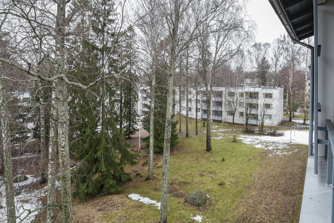 The well-designed two-bedroom home's windows open in two directions, bringing natural light into the interior. The flooring is easy-care laminate, and the walls are painted white. The living room is spacious and easy to decorate according to your taste. In summer, the space extends onto the large balcony.