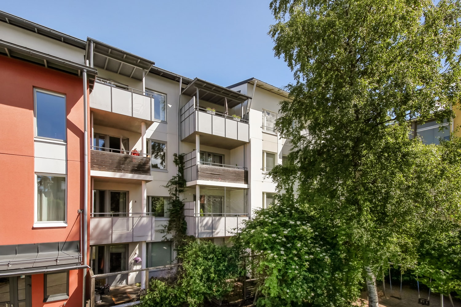 All homes in this pleasant apartment building have a sauna and a balcony (in some glassed in). The living room, kitchen/kitchenette, dining room, hallway and bedroom flooring is parquet. The shower room and sauna floors are tiled. The bathrooms have space for a washing machine and the kitchen areas for a dishwasher.