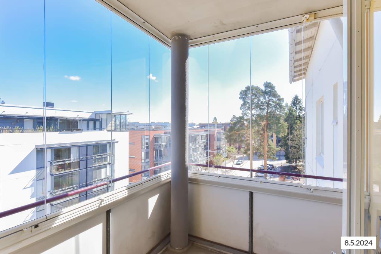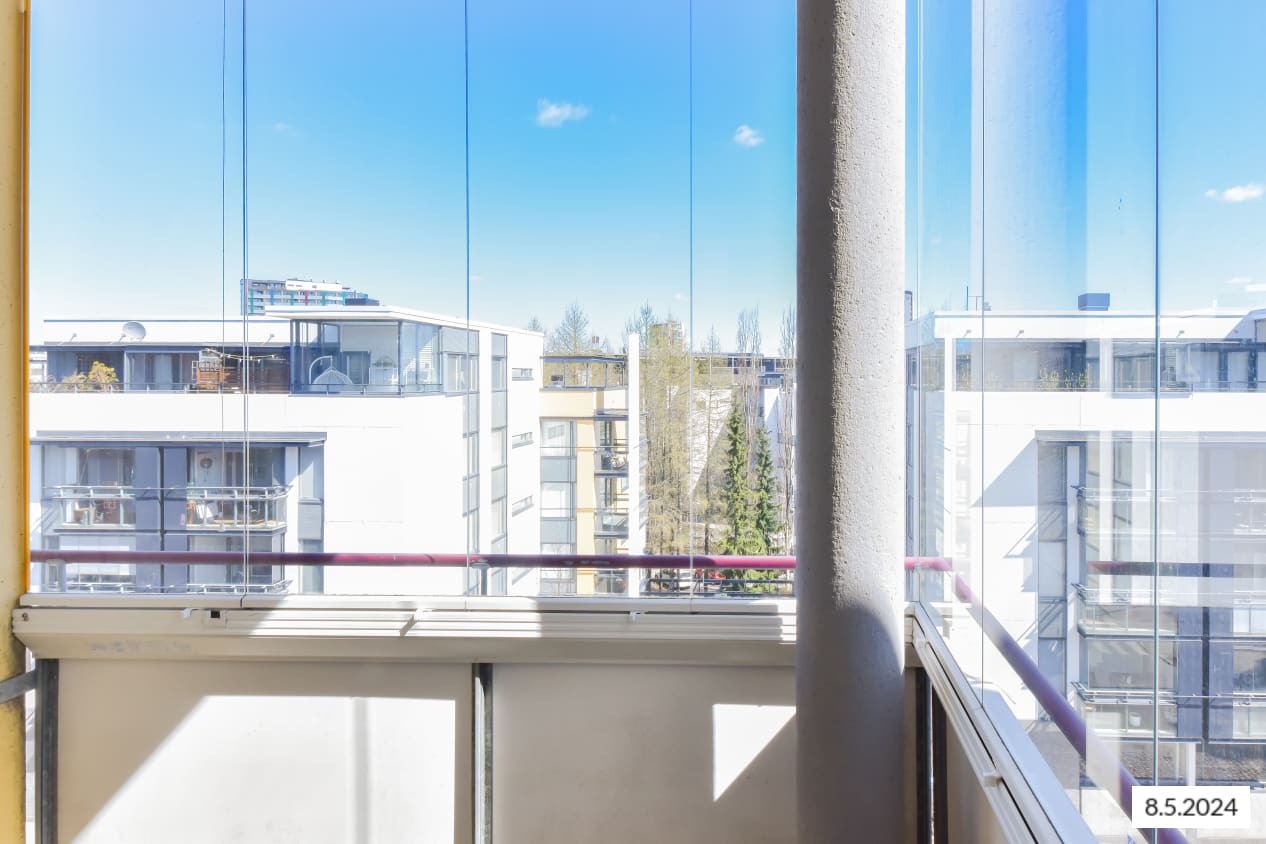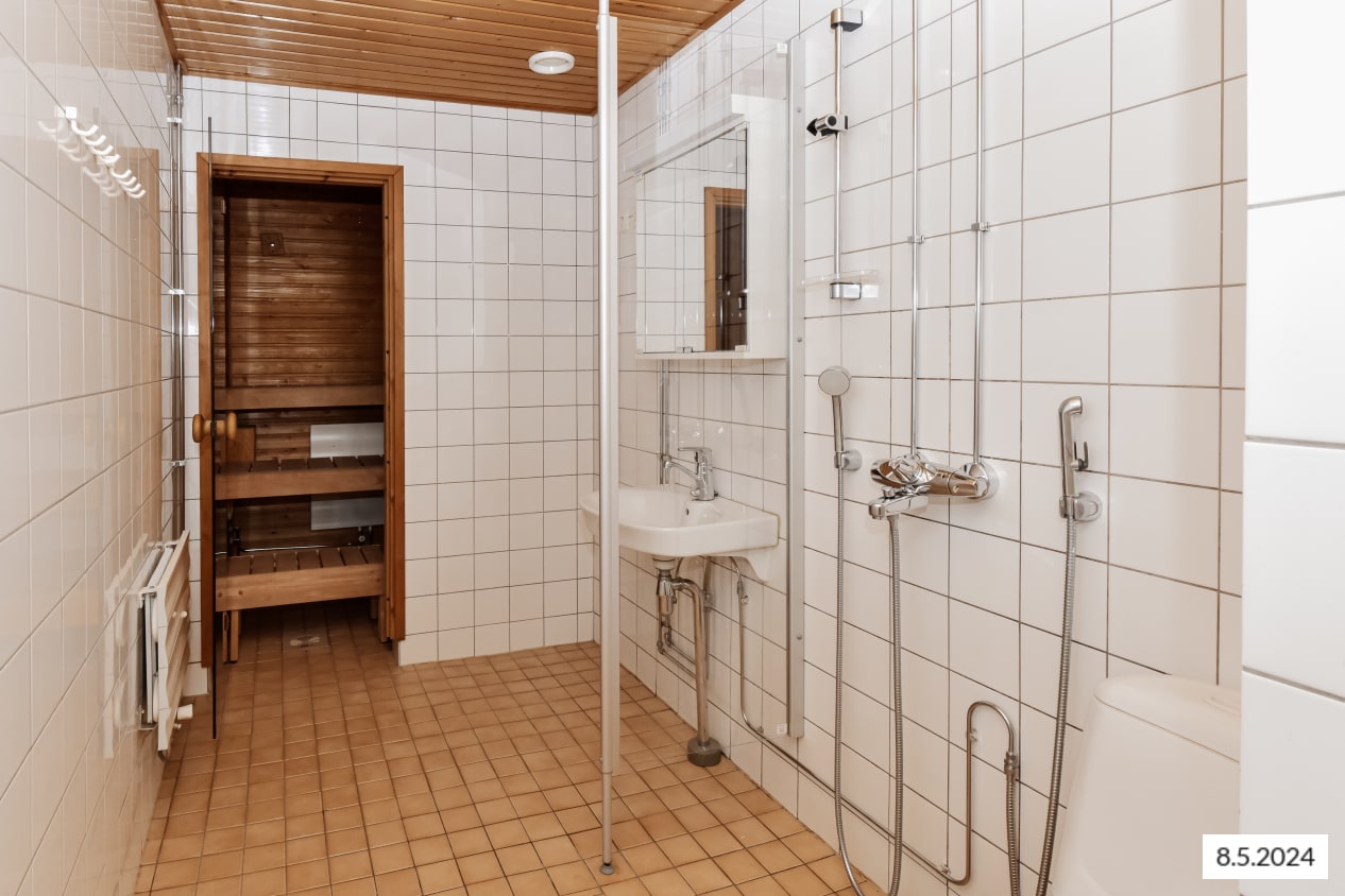 All homes in this pleasant apartment building have a sauna and a balcony (in some glassed in). The living room, kitchen/kitchenette, dining room, hallway and bedroom flooring is parquet. The shower room and sauna floors are tiled. The bathrooms have space for a washing machine and the kitchen areas for a dishwasher.
