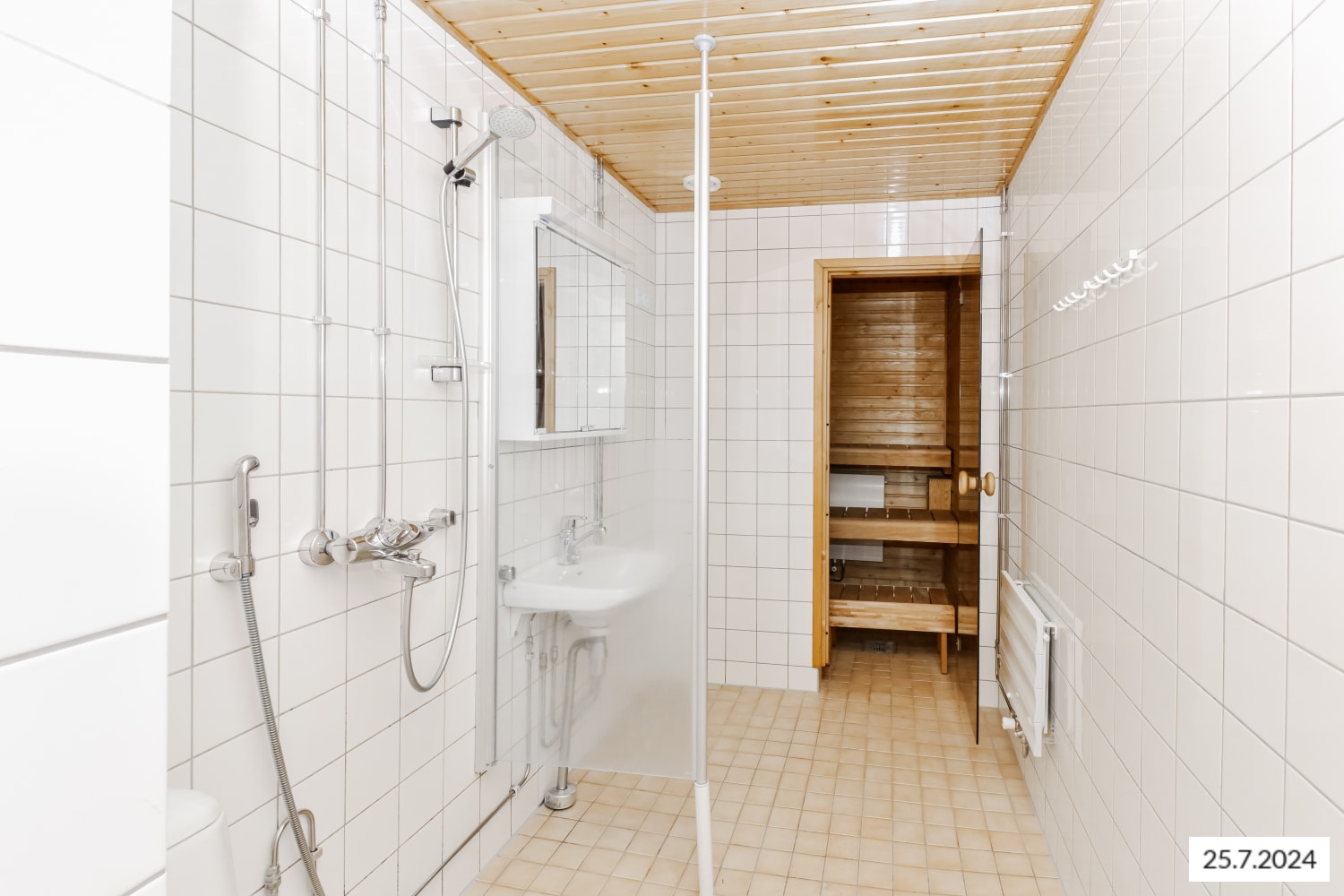 All homes in this pleasant apartment building have a sauna and a balcony (in some glassed in). The living room, kitchen/kitchenette, dining room, hallway and bedroom flooring is parquet. The shower room and sauna floors are tiled. The bathrooms have space for a washing machine and the kitchen areas for a dishwasher.