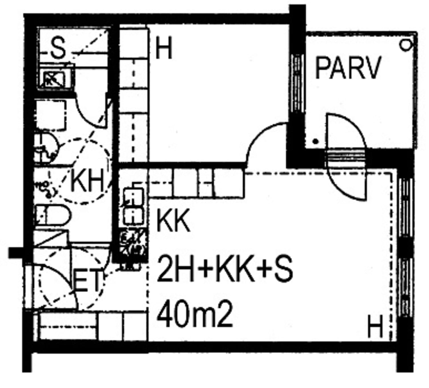 All homes in this pleasant apartment building have a sauna and a balcony (in some glassed in). The living room, kitchen/kitchenette, dining room, hallway and bedroom flooring is parquet. The shower room and sauna floors are tiled. The bathrooms have space for a washing machine and the kitchen areas for a dishwasher.