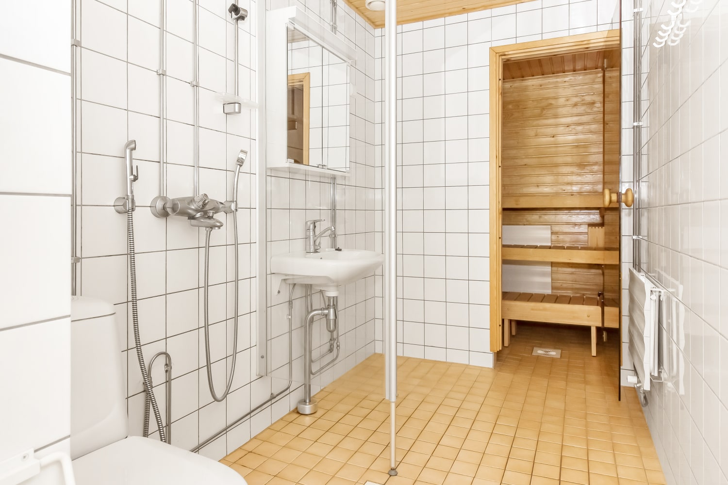 All homes in this pleasant apartment building have a sauna and a balcony (in some glassed in). The living room, kitchen/kitchenette, dining room, hallway and bedroom flooring is parquet. The shower room and sauna floors are tiled. The bathrooms have space for a washing machine and the kitchen areas for a dishwasher.
