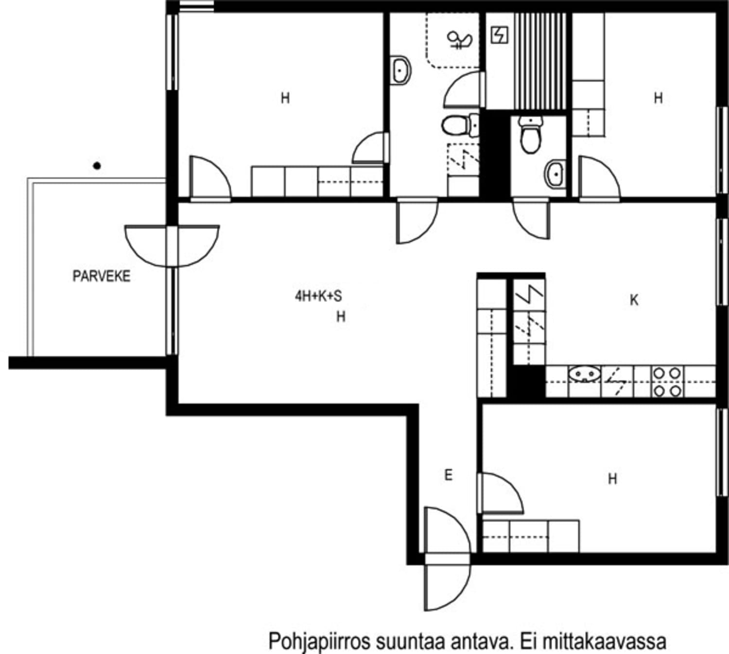 In this three-bedroom apartment, there’s plenty of space for the whole family to live and play! The home has a clear and easily furnishable layout. The bright bedrooms come with ample storage space in tall closets. The living room opens up to a sunny balcony, providing cozy extra space from spring to autumn. The flooring consists of laminate and vinyl, and the walls are painted.