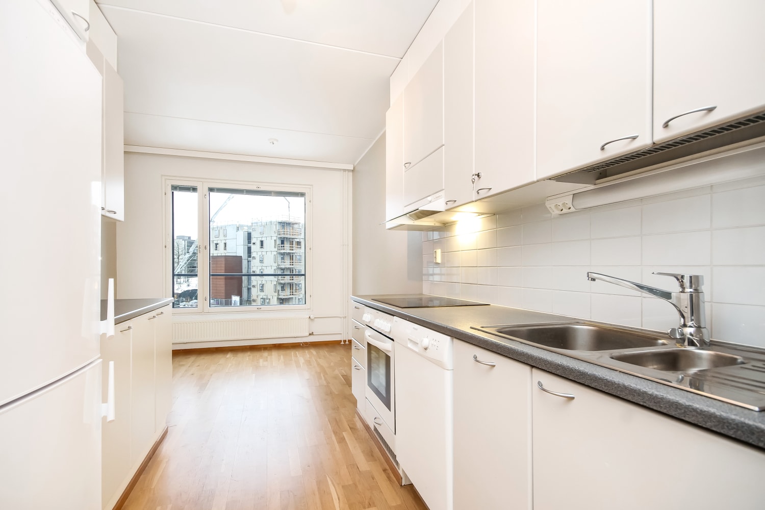 The units at this apartment building located in the urbanising neighbourhood of Vallikallio feature smart layouts. Considering their central location, the units are really quiet. Parquet floors and tiled bathrooms with underfloor heating along with a restful colour scheme give these four-star SATO QualityHomes their understated elegance. All homes have a glassed-in balcony. The kitchens are equipped with a flush-mounted ceramic cooktop, integrated oven, dishwasher and fridge-freezer (separate larder-fridge and freezer in the units of 2br+k+s).