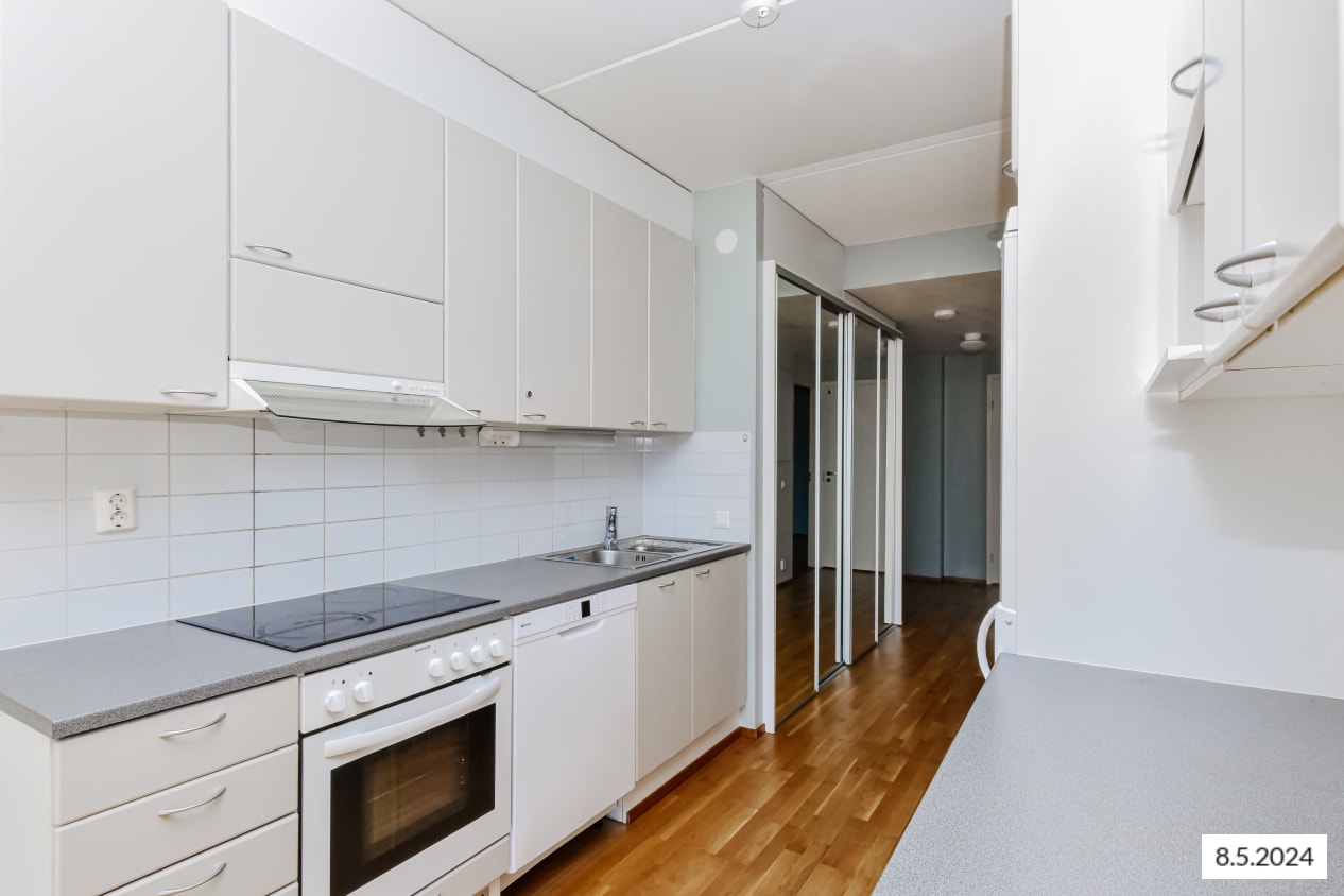 The units at this apartment building located in the urbanising neighbourhood of Vallikallio feature smart layouts. Considering their central location, the units are really quiet. Parquet floors and tiled bathrooms with underfloor heating along with a restful colour scheme give these four-star SATO QualityHomes their understated elegance. All homes have a glassed-in balcony. The kitchens are equipped with a flush-mounted ceramic cooktop, integrated oven, dishwasher and fridge-freezer (separate larder-fridge and freezer in the units of 2br+k+s).