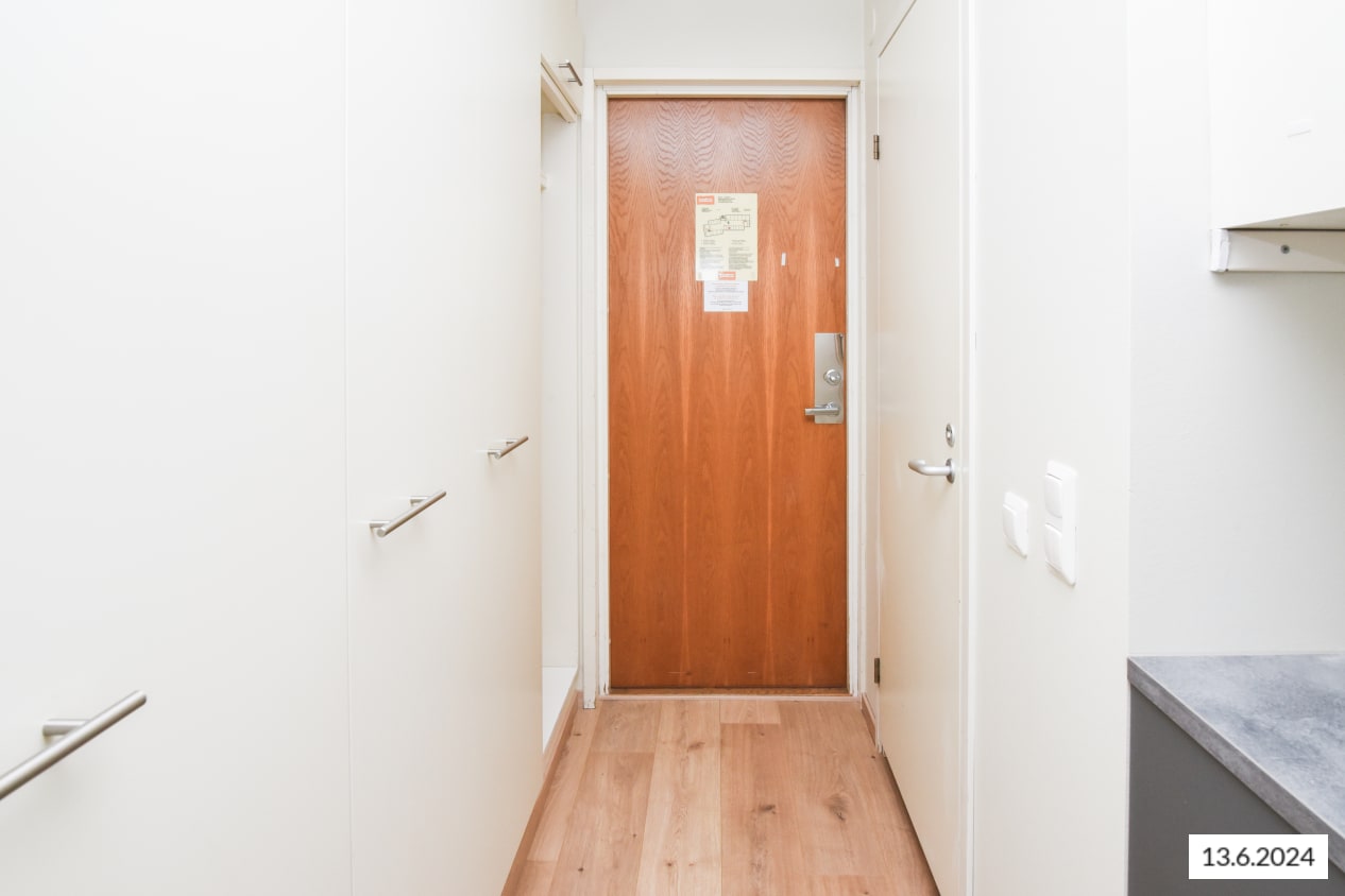 This compact studio apartment is a functional base for everyday living. You can rent this apartment for as long as you need, starting from one month, without the need for a long-term commitment. Located next to a small forest strip, nature can be brought even closer by opening the French balcony door. There is storage space both in the kitchen and the hallway. The apartment has laminate flooring.