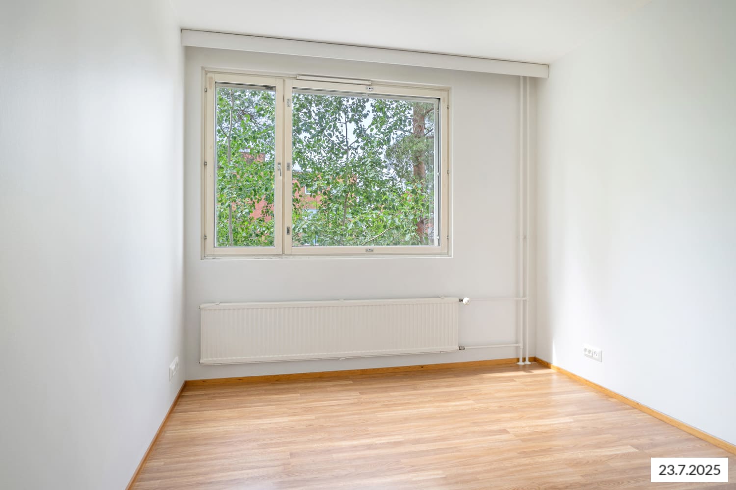 The heart of this charming corner apartment is the bright living space formed by the kitchen and living room, with windows opening in two directions. The living room provides access to a generously sized balcony, perfect for enjoying breakfast on a summer morning or cooling down after a sauna session.