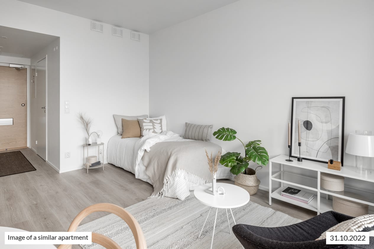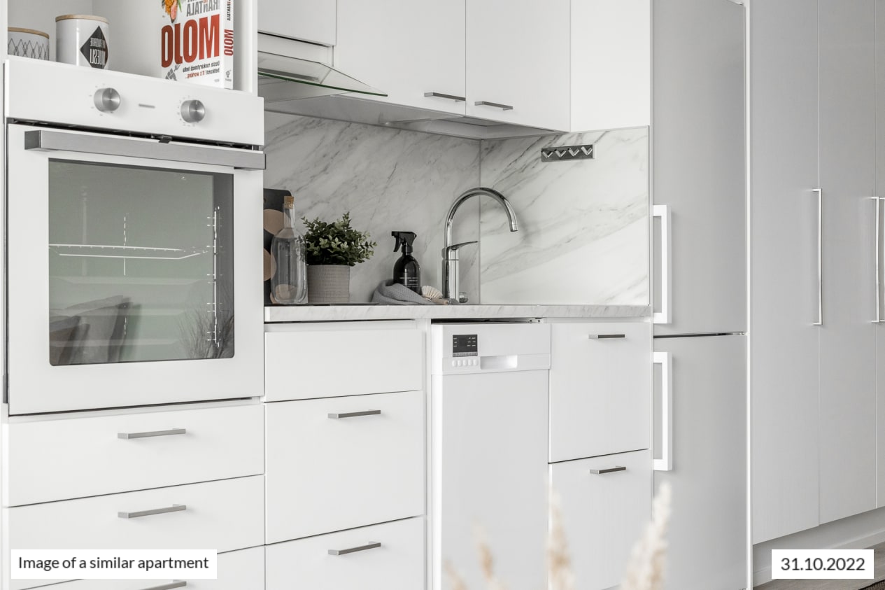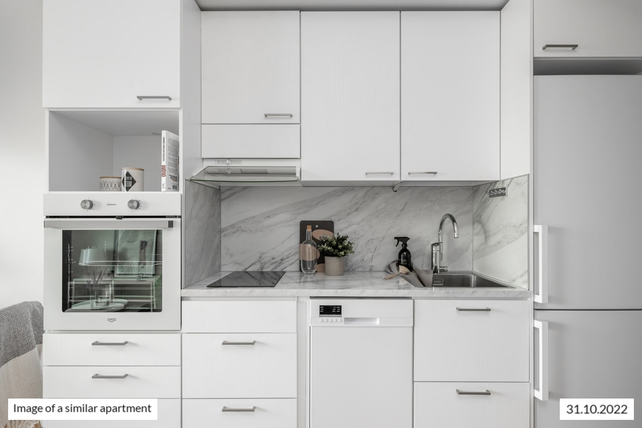 The light-filled home has a smart layout with plenty of potential ways to furnish the space just the way you like it. This totally new apartment is extended by a glassed-in balcony spanning the entire width of the space and with a view towards the sea in the direction of Helsinki and Vermo harness racing track. This home makes use of every square metre. The compact studio has a functional open-plan kitchen and wardrobe space in the entrance hallway. The home’s surface materials are timelessly beautiful, and the light colour scheme provides a neutral backdrop for any decor style. The open-plan kitchen has fresh white cabinet doors and marble-look laminate worktops. The kitchen is equipped with a ceramic cooktop, built-in oven, dishwasher, cold appliances and space for a microwave. The bathroom comes with white Kide range furniture designed for SATO and made in Finland. The bathroom walls are done in white tiles, and the floor tiles are dark grey. The bathroom has space for a washing machine and dryer. Now you get a free parking space for 6 months! Your rental agreement includes one free parking space for your car in the Runoratsu Parking Hall at Anna Sahlsteninkatu 11 (value €75 incl. VAT/month) for a period of six (6) months, when the agreement is signed between 22 January and 30 June 2026. After this, the parking agreement will automatically become paid, with a one-month notice period. The rental agreement is made with Kiinteistöhuolto Tahti. In addition, EV charging in the hall is subject to the standard €10/month fee and the electricity used for charging, both also during the first six months. Could this be your new RentHome?