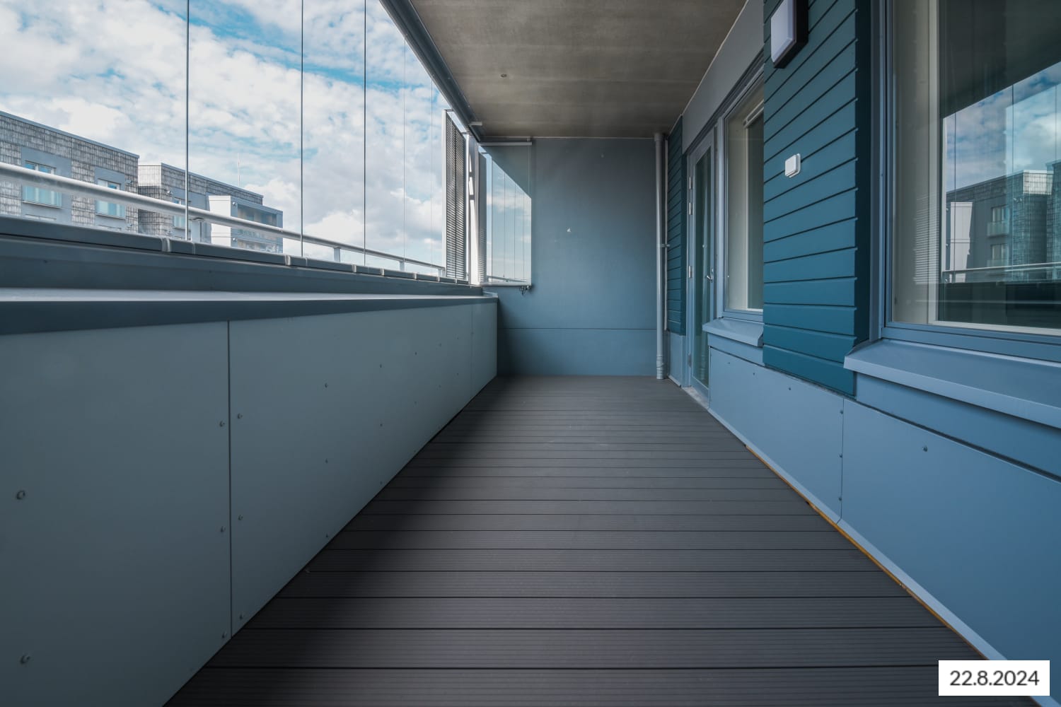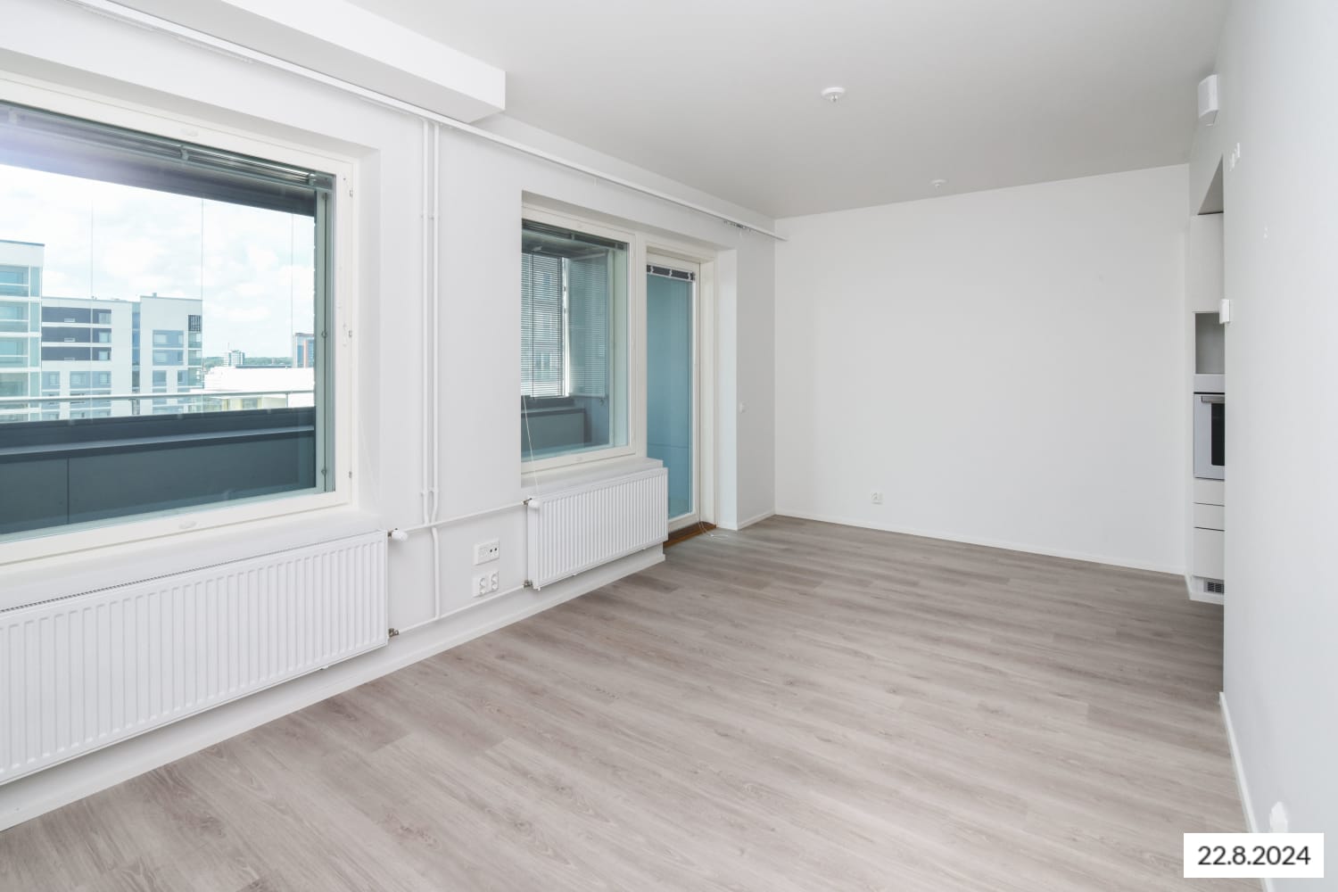 The functional home features a smart layout with plenty of potential ways to furnish the space just the way you like it. This totally new apartment is extended by a large glassed-in balcony spanning the entire width of the space.