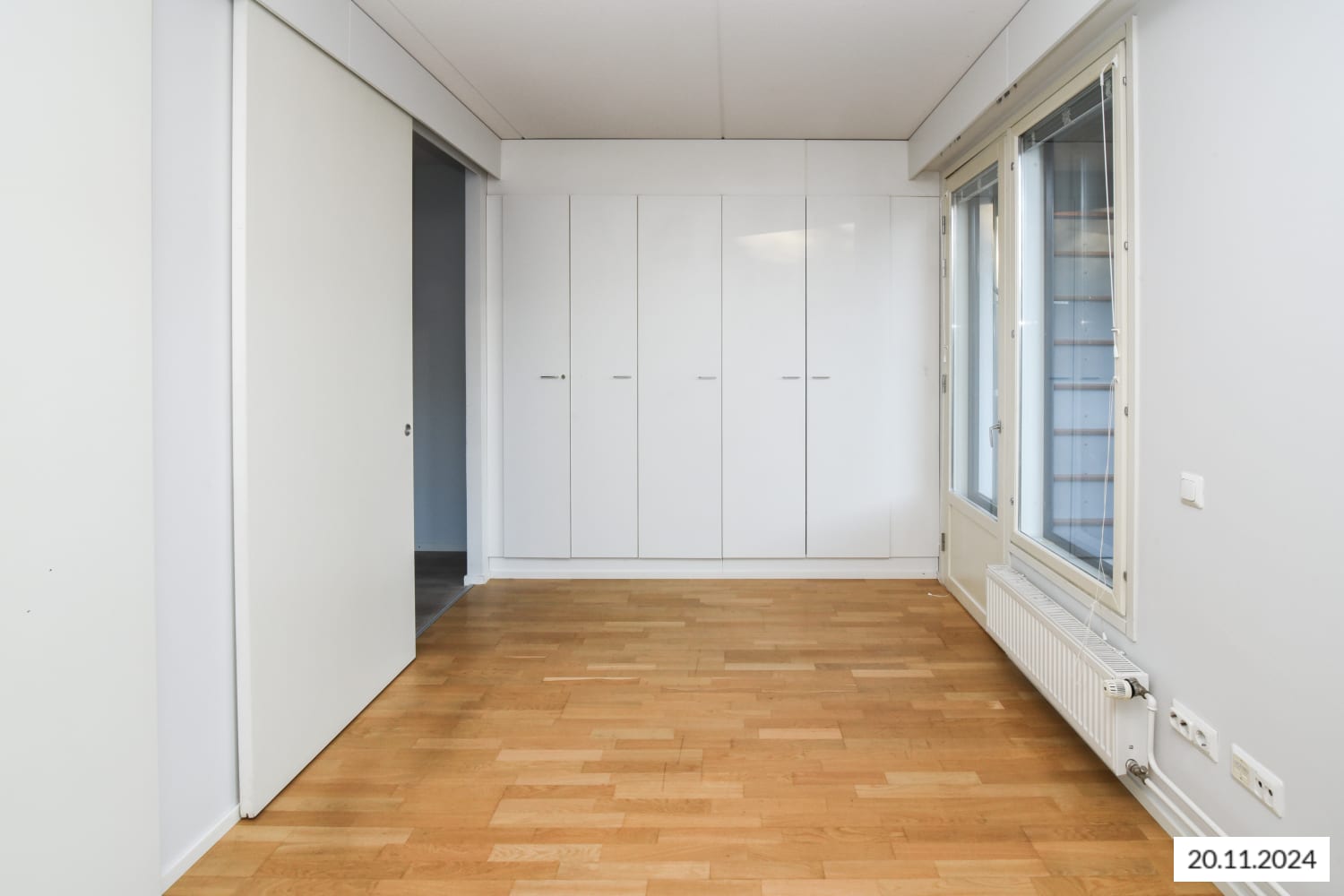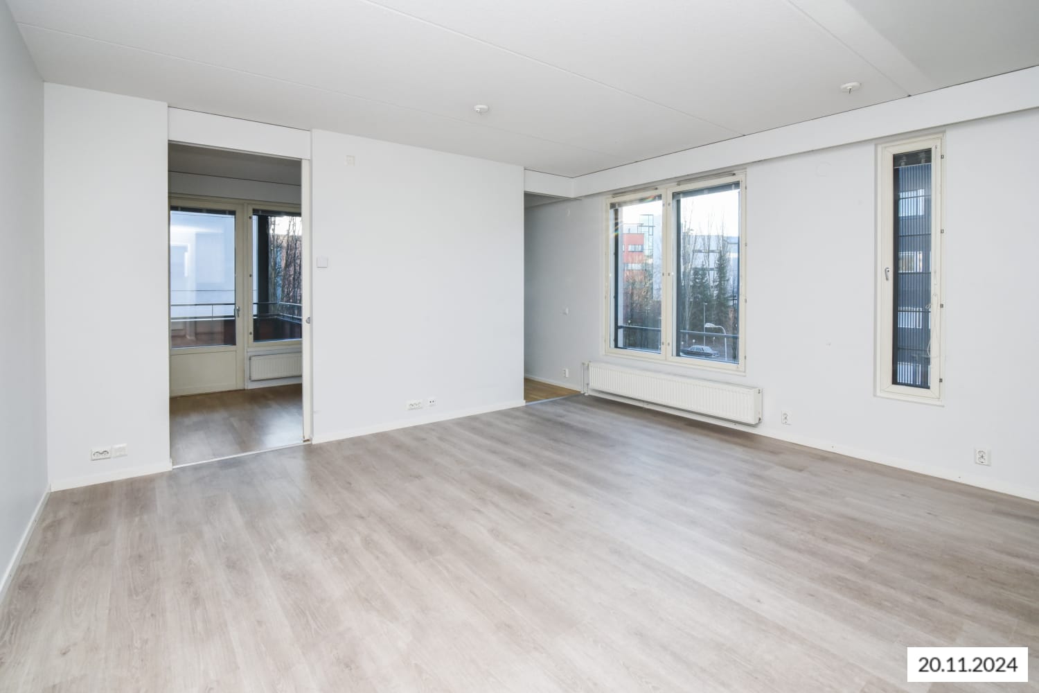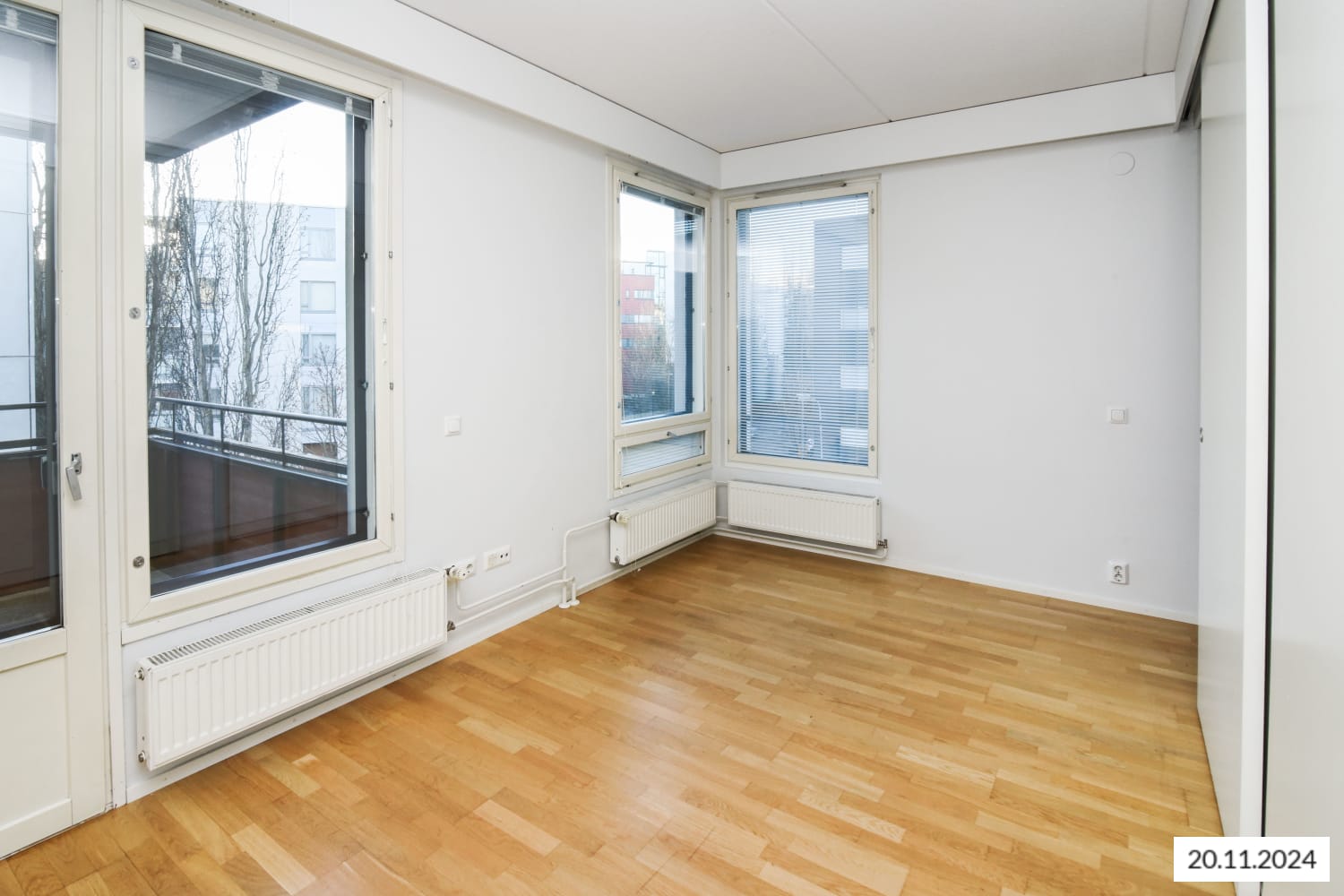 A bright and cosy one-bedroom apartment has become available in a well-maintained residential building located in the newer part of Leppävaara city centre. The apartment features stylish parquet flooring in the living areas, and a sheltered south-facing balcony overlooking the courtyard. The bedroom includes ample built-in storage with tall wardrobes.