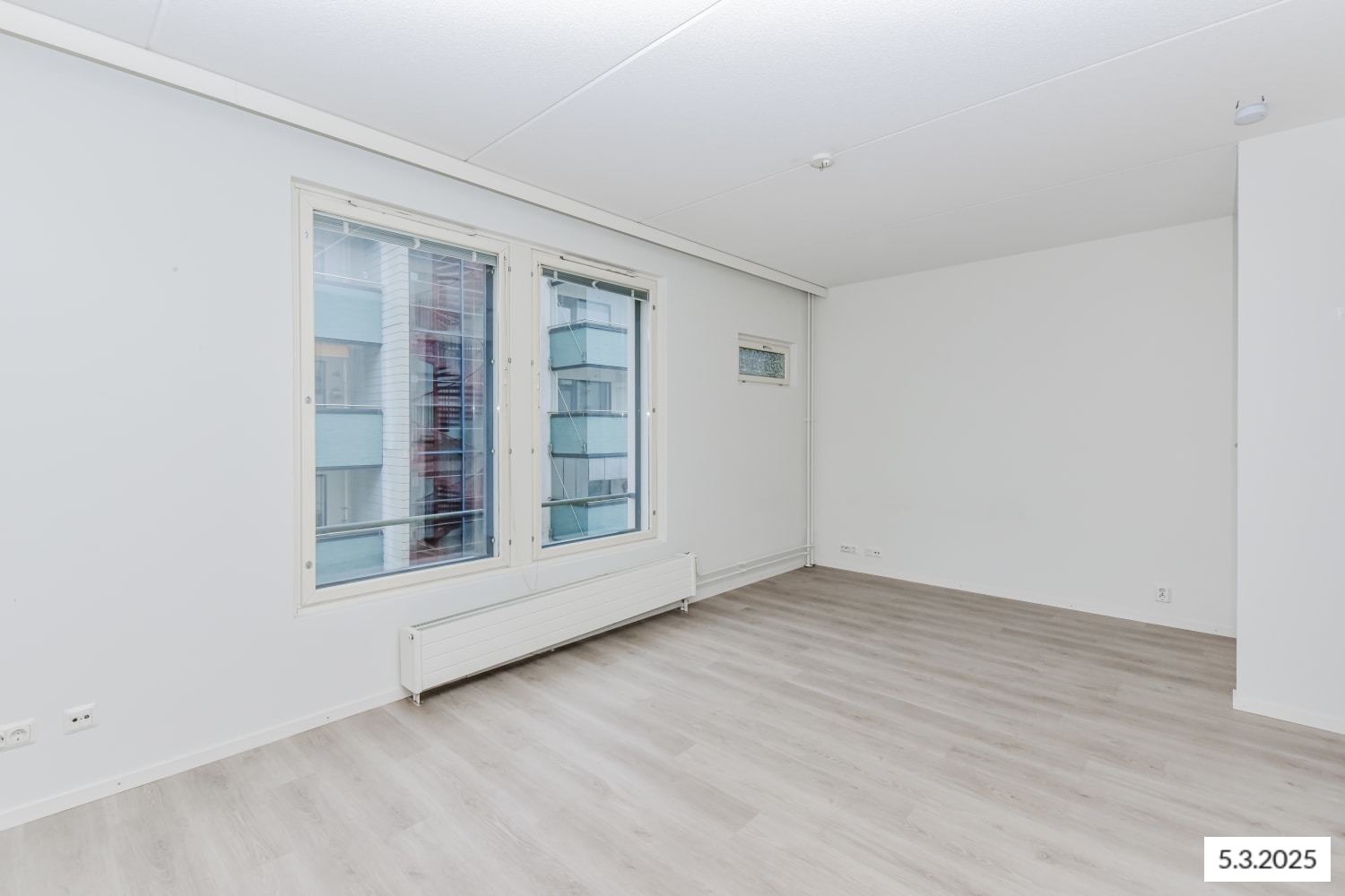 This fourth-floor studio in a lift-equipped building charms with its spacious feel and large windows that let the natural light in. The neutral light-toned interiors provide a fresh and versatile canvas for your own decor style.