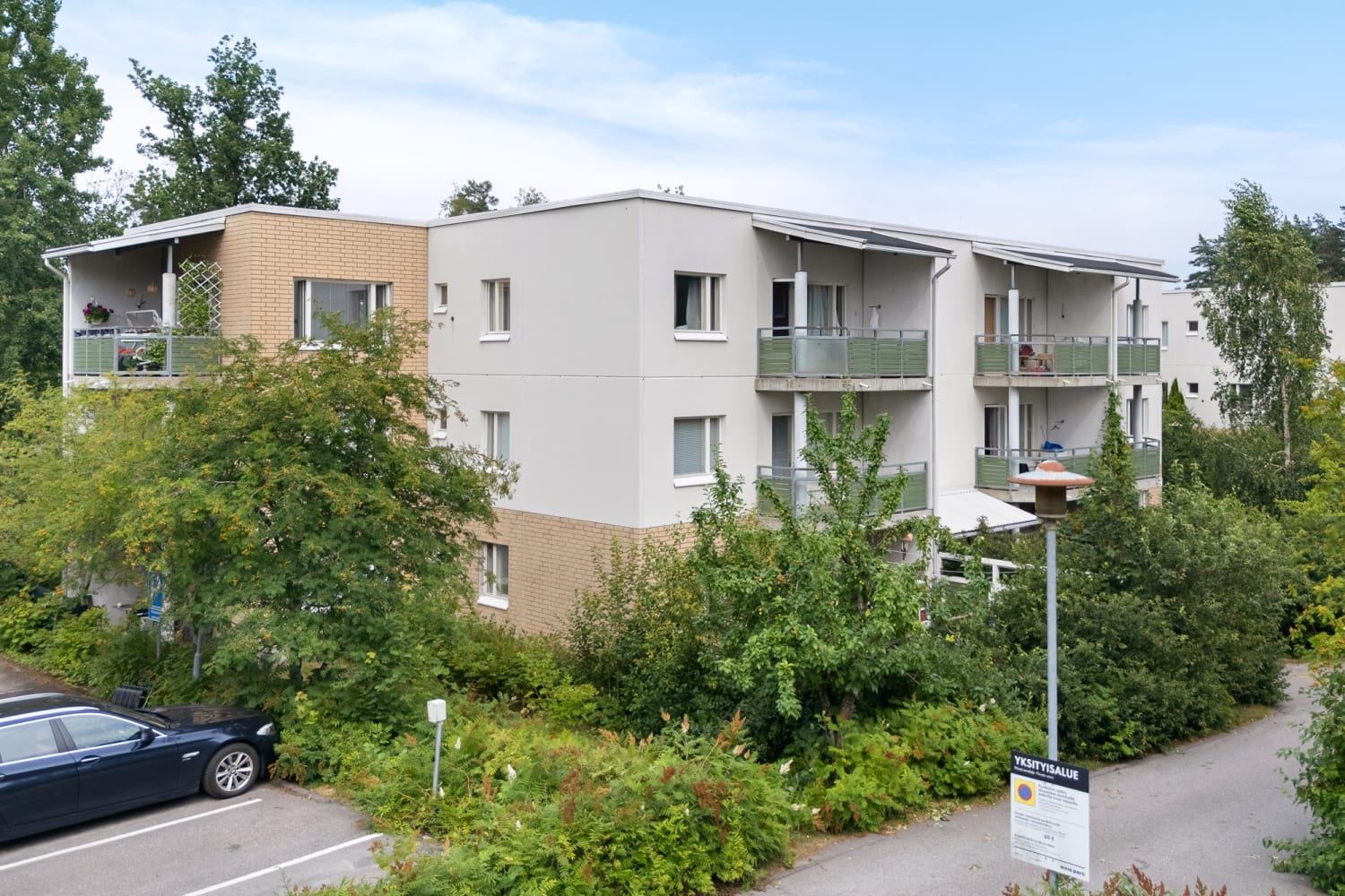 This pleasant three-storey building occupies a prime location on a dead-end street in leafy Leppävaara close to Leppävaara community park. The units in the building range from studios to spacious family homes. All units feature a private sauna and either a balcony or terrace.