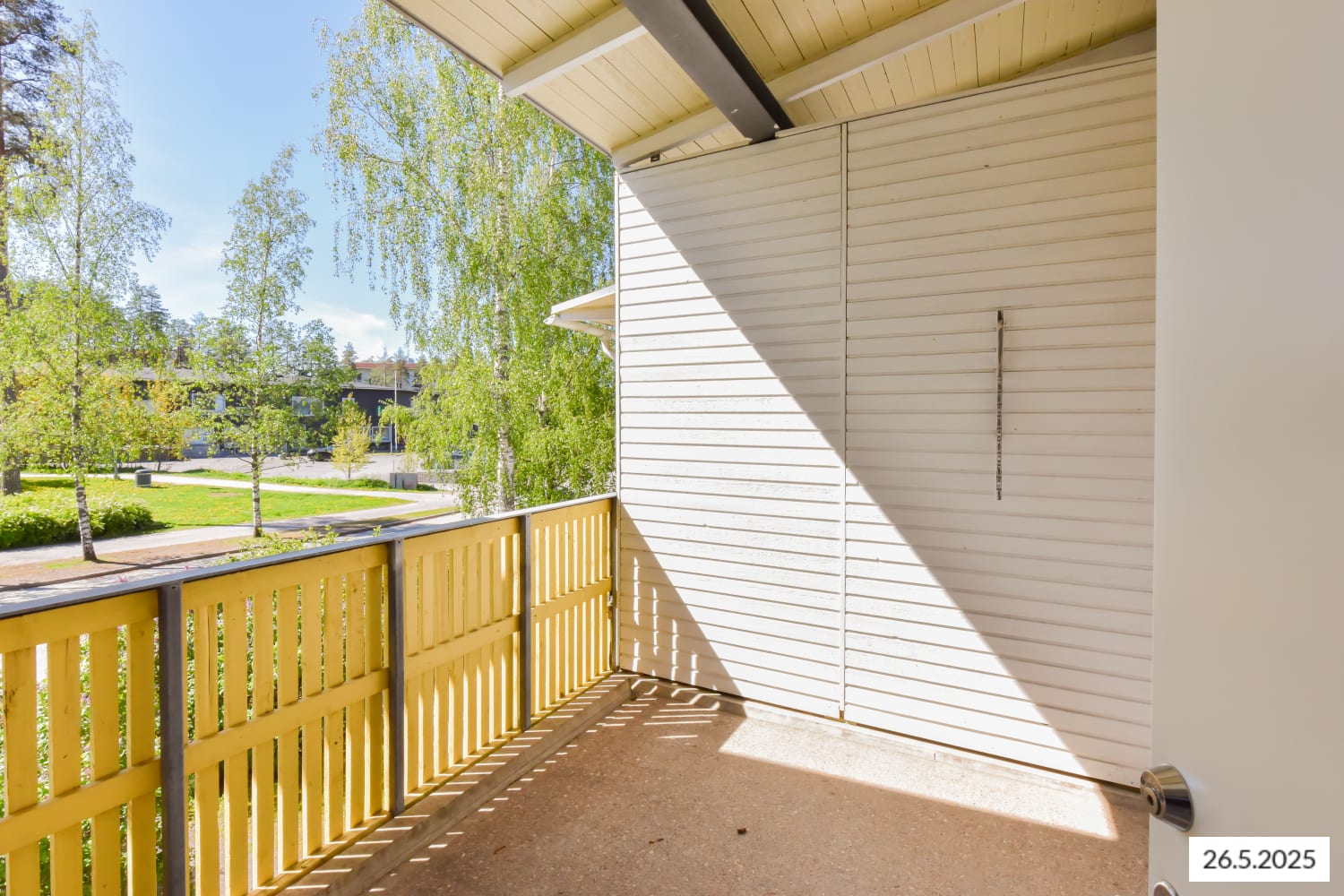 This one-bedroom home is located in a family-friendly area with detached houses and features a spacious balcony.