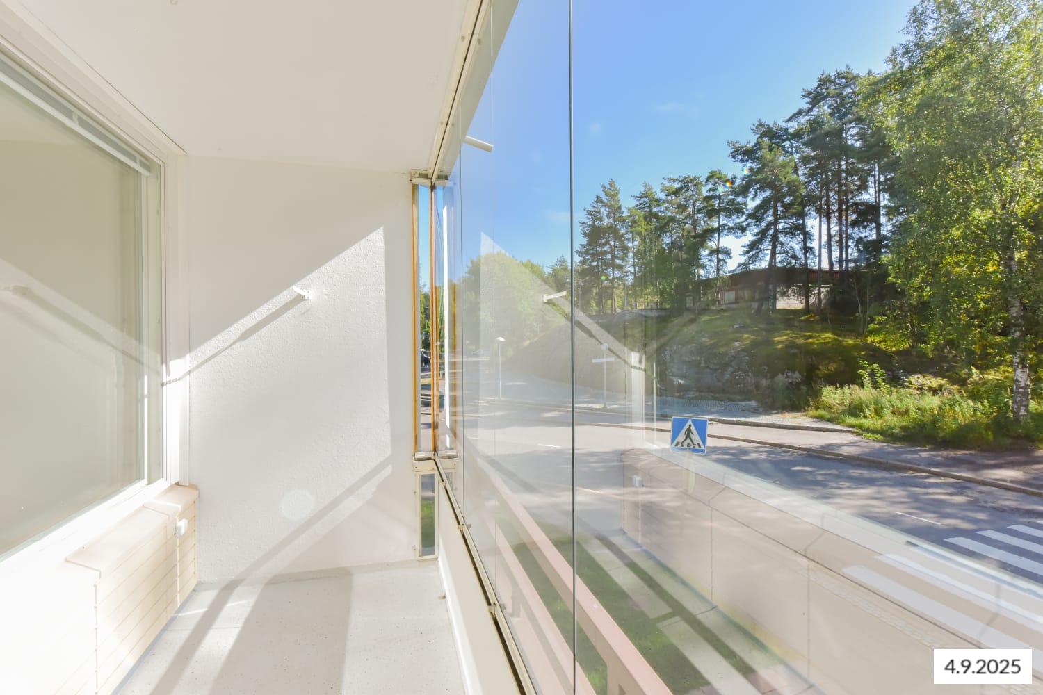 This renovated, spacious one-bedroom home opens to two directions. Thanks to the clear floor plan, you can easily furnish the home to reflect your personal style. The home's floor is oak laminate and the walls are painted white. Extending from the living room is a glazed balcony, which almost becomes an extra room in the summer.