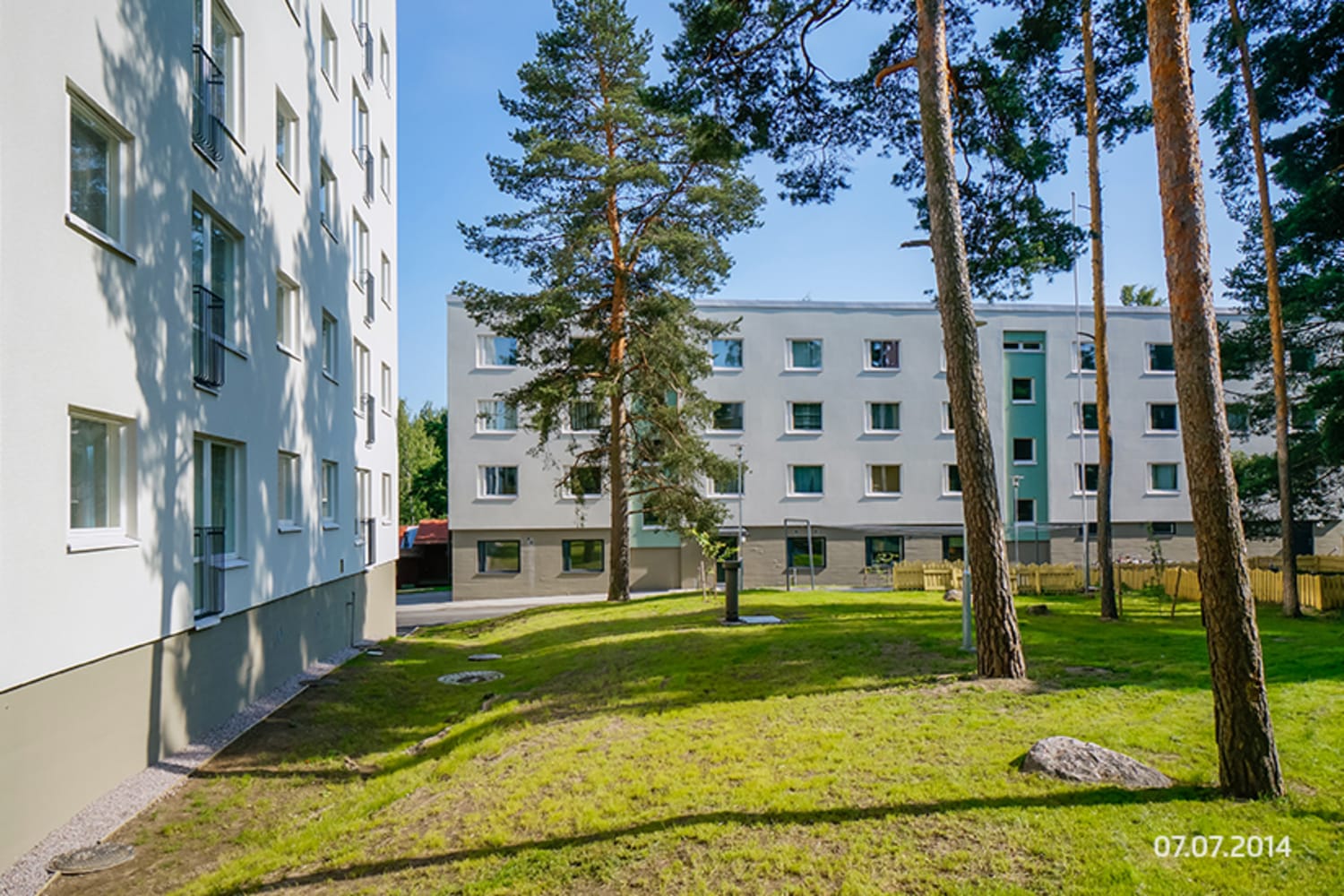 The buildings located on the edge of a cozy resident park, the lower one was completed after renovations in the summer, and the higher one at the end of 2013. The building was originally constructed in 1969 and has three floors.