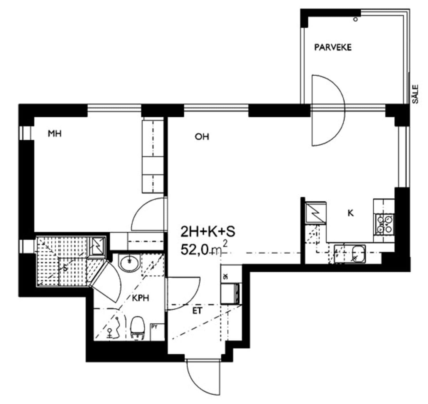 - 1 bedroom, 52 m²