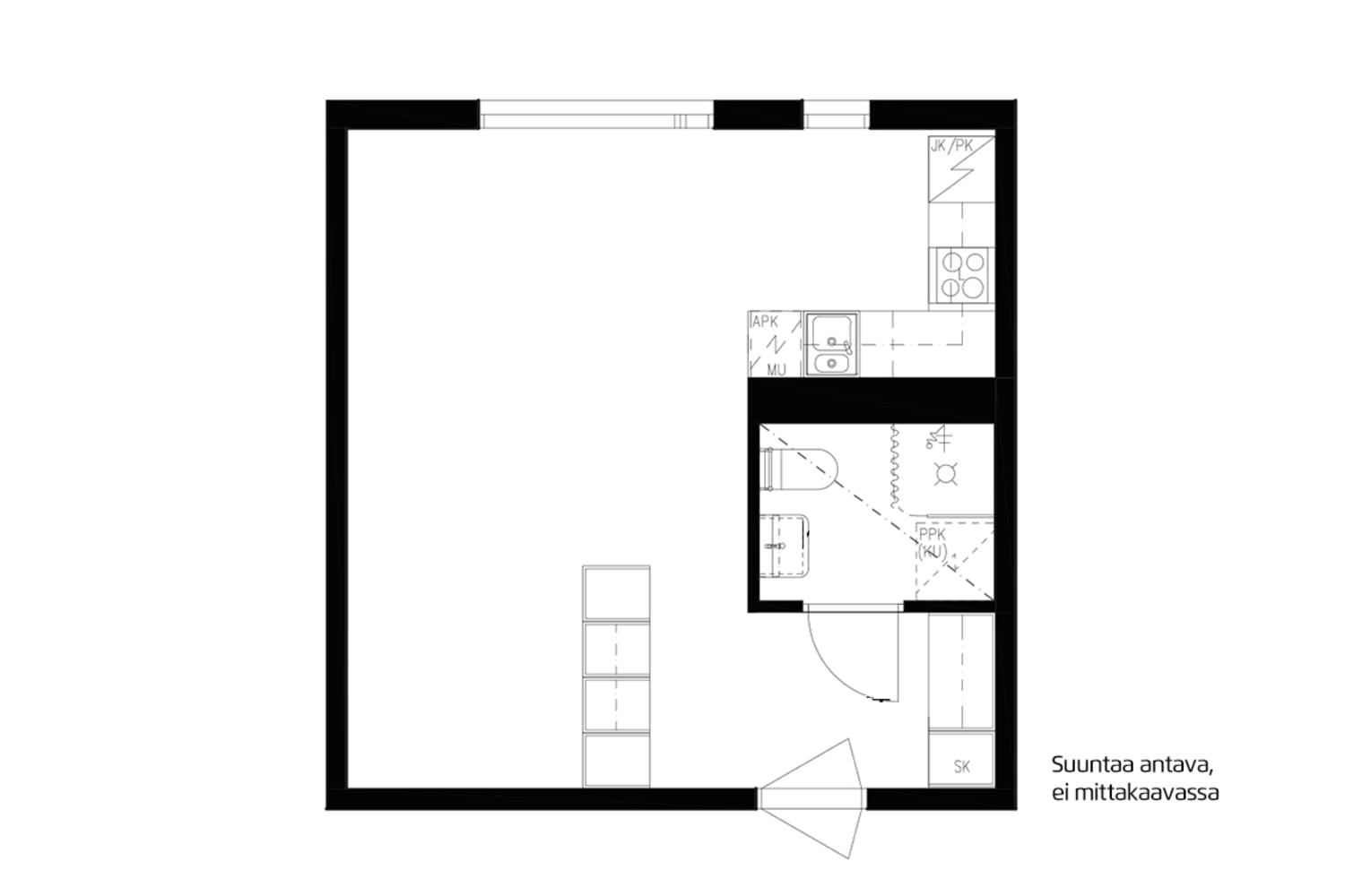 - studio, 33.5 m²