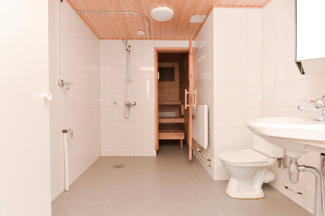 The low-rise, 2-4-story house located along the end of the street has homes suitable for many living situations, from studios with kitchens to spacious family apartments. The kitchens of the bright apartments have white cabinets, a white worktop, a fridge-freezer, a stove, an extractor fan and a place and connections for a dishwasher. The bathrooms have space for a washing machine. All apartments have their own sauna and balcony or their own yard area. There is an elevator in the stairs of building D and E.