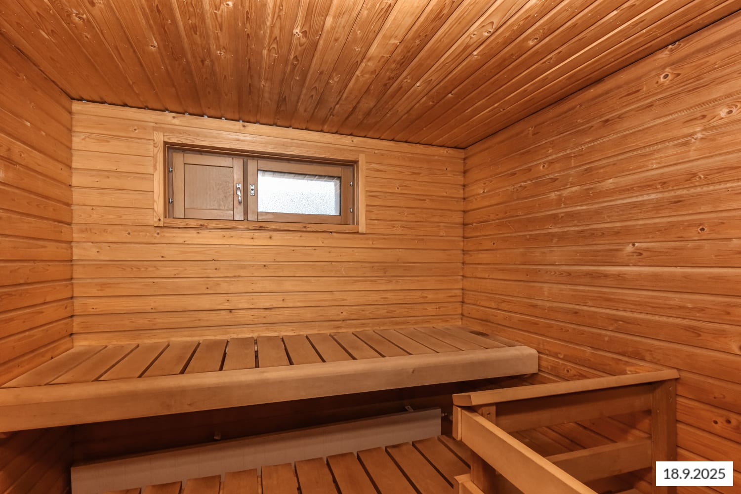 The bathroom has space and connections for your washing machine. The gem of the apartment is the sauna with a ventilation window, allowing you to relax whenever it suits you best. A separate small toilet streamlines everyday life. Storage space is available in both bedrooms.