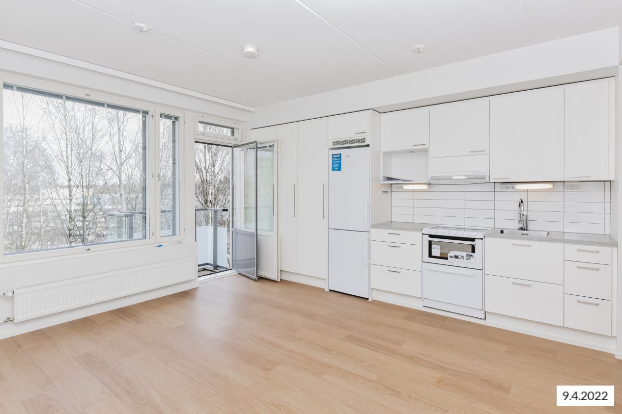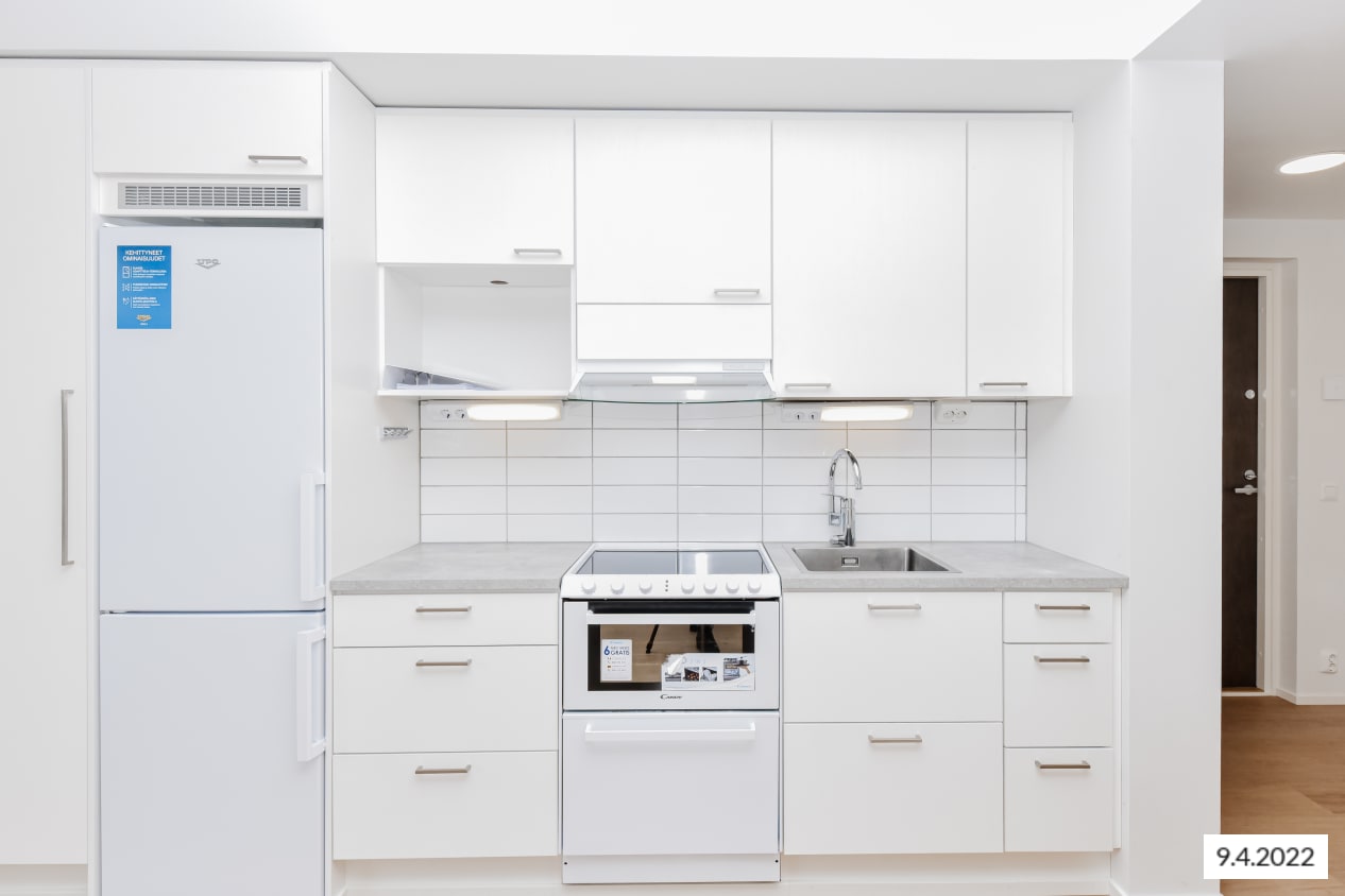 Kappelirinne 4 is a seven-storey new apartment building within walking distance from Niittykumpu Metro station. The building has 77 SATO RentalHomes from compact studios and 1 br. homes to 3-4 br. family apartments. The light-colored apartments are beautiful and timeless. All homes have open-plan kitchens that connect to the living areas. The floors are light oak laminate and the walls are painted white. The kitchens have light colored cabinets and they are equipped with a ceramic cooker, dishwasher and fridge-freezer or separate fridge and freezer. Studios have cooker/dishwasher combination. The bathroom walls and floors are tiled, and the washing machine has its own space. Studios have French balconies and bigger apartments have a glazed-in balcony.