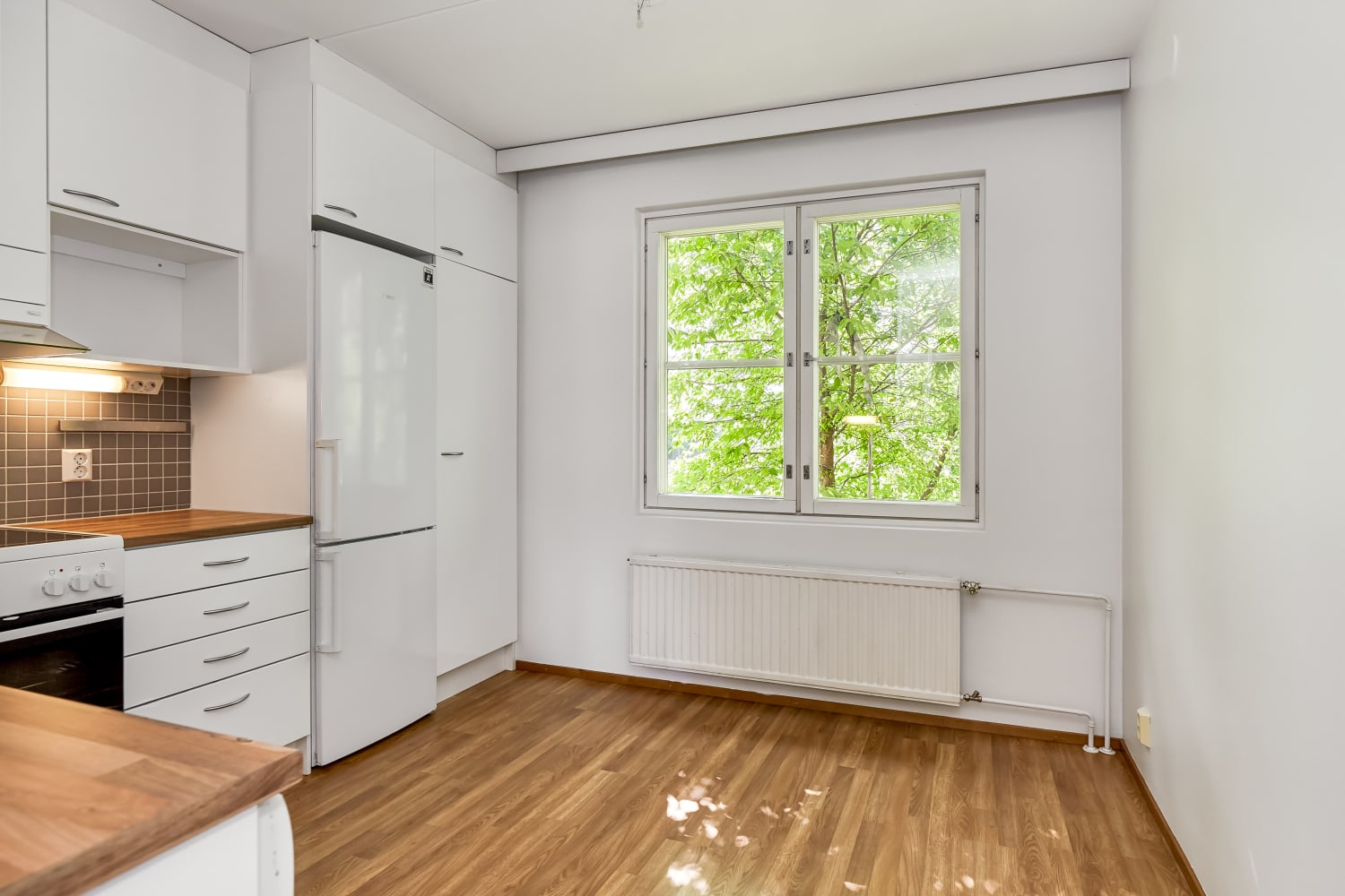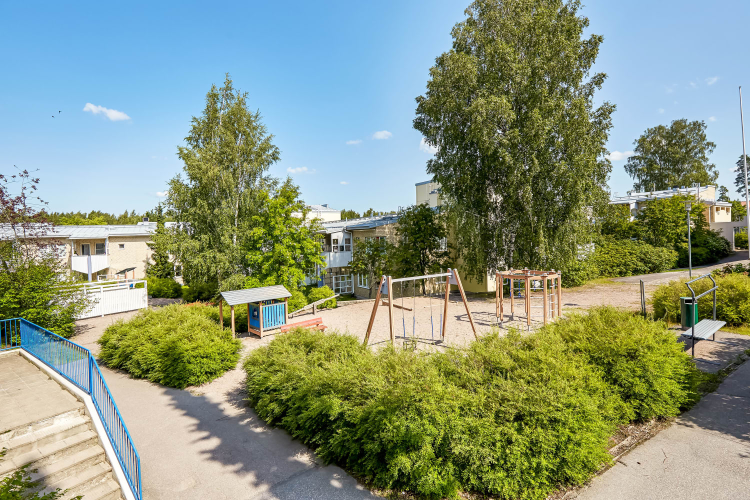Located in leafy Niittymaa, this complex consists of four pleasant three-storey buildings. All units feature a private sauna and either private garden or balcony. The floors are done in laminate and the bathrooms are tiled. The kitchens have space for a dishwasher and the bathrooms for washing machine.