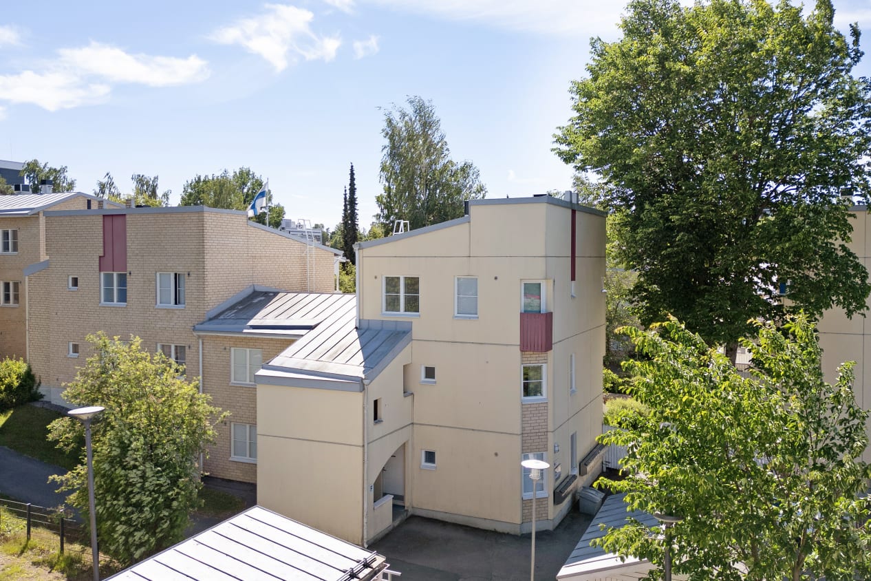 Located in leafy Niittymaa, this complex consists of four pleasant three-storey buildings. All units feature a private sauna and either private garden or balcony. The floors are done in parquet and the bathrooms are tiled. The kitchens have space for a dishwasher and the bathrooms for washing machine.