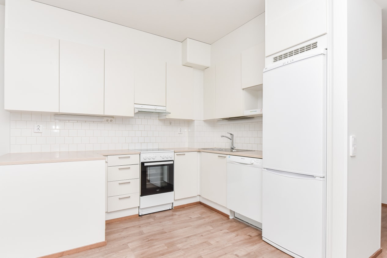 This state-of-the art eight-storey building is located in a modern urban block with a pleasant park-like shared courtyard in the middle serving as a common living room for residents. The open-plan kitchens and light-filled living rooms of these beautiful homes are laid out for easy decoration and furnishing. Non-wet room floors are laid in stylish laminate. The kitchen fixtures and fittings include a cooker, dishwasher, fridge-freezer and space for a microwave oven. The fully tiled bathrooms have space for a washing machine and dryer. For lovely added space in all apartments there is a glassed-in balcony that you can decorate to your liking. The shared laundry and drying room are on the ground floor, while car parking spaces can be found in the car parking facility next to the building.