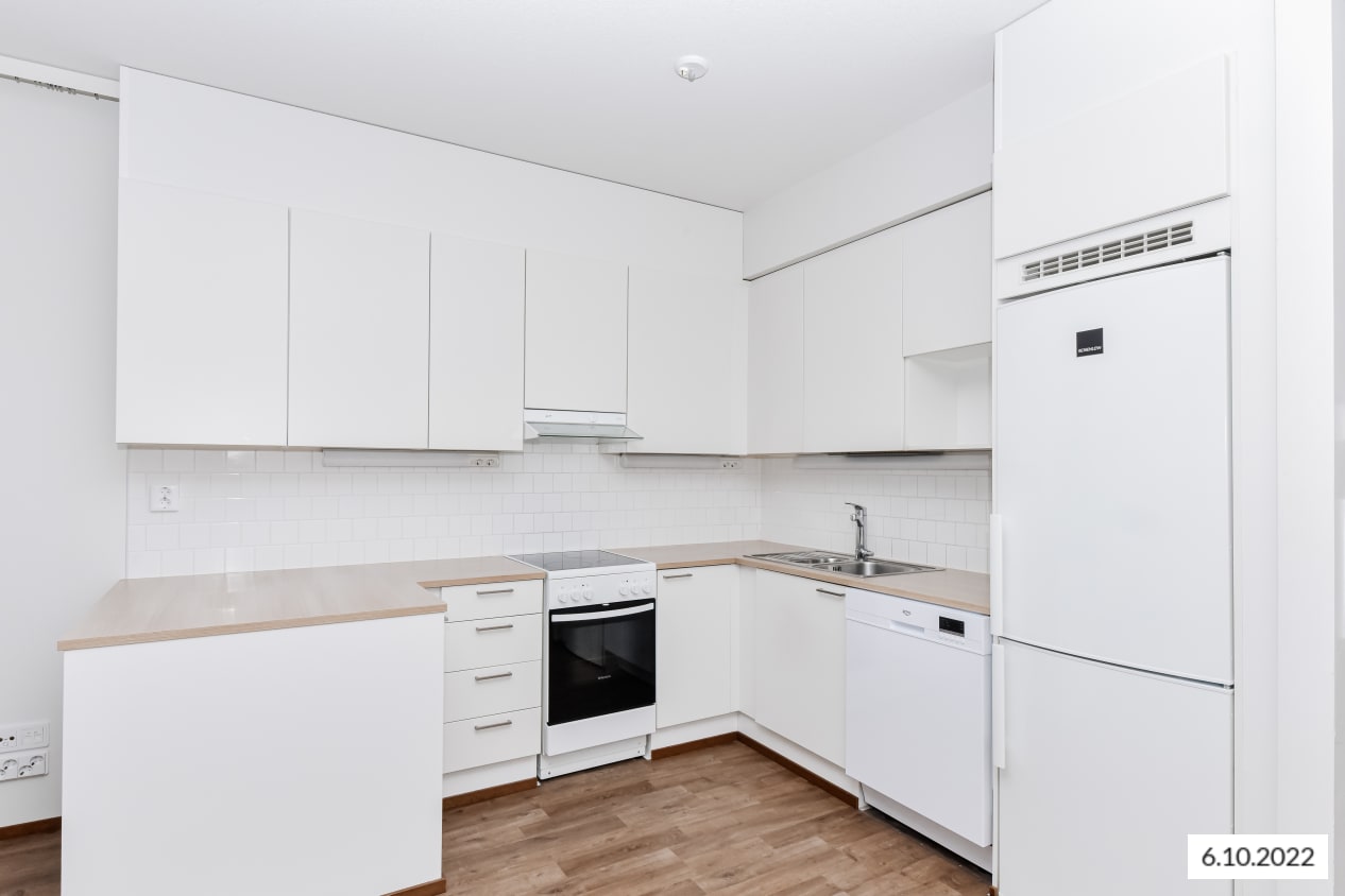 This state-of-the art eight-storey building is located in a modern urban block with a pleasant park-like shared courtyard in the middle serving as a common living room for residents. The open-plan kitchens and light-filled living rooms of these beautiful homes are laid out for easy decoration and furnishing. Non-wet room floors are laid in stylish laminate. The kitchen fixtures and fittings include a cooker, dishwasher, fridge-freezer and space for a microwave oven. The fully tiled bathrooms have space for a washing machine and dryer. For lovely added space in all apartments there is a glassed-in balcony that you can decorate to your liking. The shared laundry and drying room are on the ground floor, while car parking spaces can be found in the car parking facility next to the building.