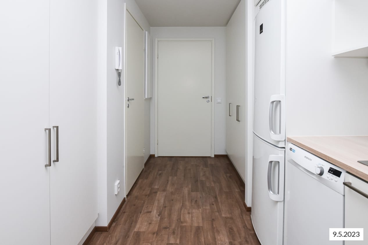 This state-of-the art eight-storey building is located in a modern urban block with a pleasant park-like shared courtyard in the middle serving as a common living room for residents. The open-plan kitchens and light-filled living rooms of these beautiful homes are laid out for easy decoration and furnishing. Non-wet room floors are laid in stylish laminate. The kitchen fixtures and fittings include a cooker, dishwasher, fridge-freezer and space for a microwave oven. The fully tiled bathrooms have space for a washing machine and dryer. For lovely added space in all apartments there is a glassed-in balcony that you can decorate to your liking. The shared laundry and drying room are on the ground floor, while car parking spaces can be found in the car parking facility next to the building.