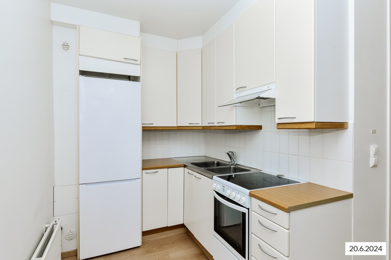 This building standing close to Kuitinkallio hill has spacious one-bedrooms and compact studios. The units are clearly laid out for easy furnishing and walk-in wardrobes provide extra storage. The floors are done in laminate and vinyl flooring. Some of the bathrooms have tubs. The one-bedrooms have balconies. The units on the highest floors offer views over Olari and Friisilä.