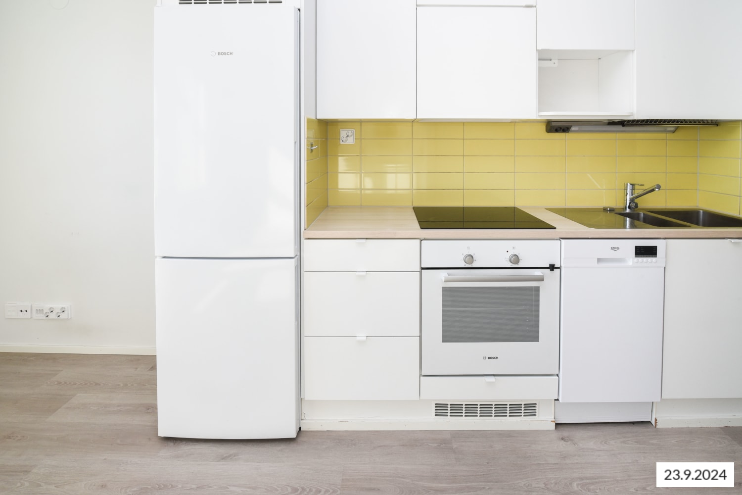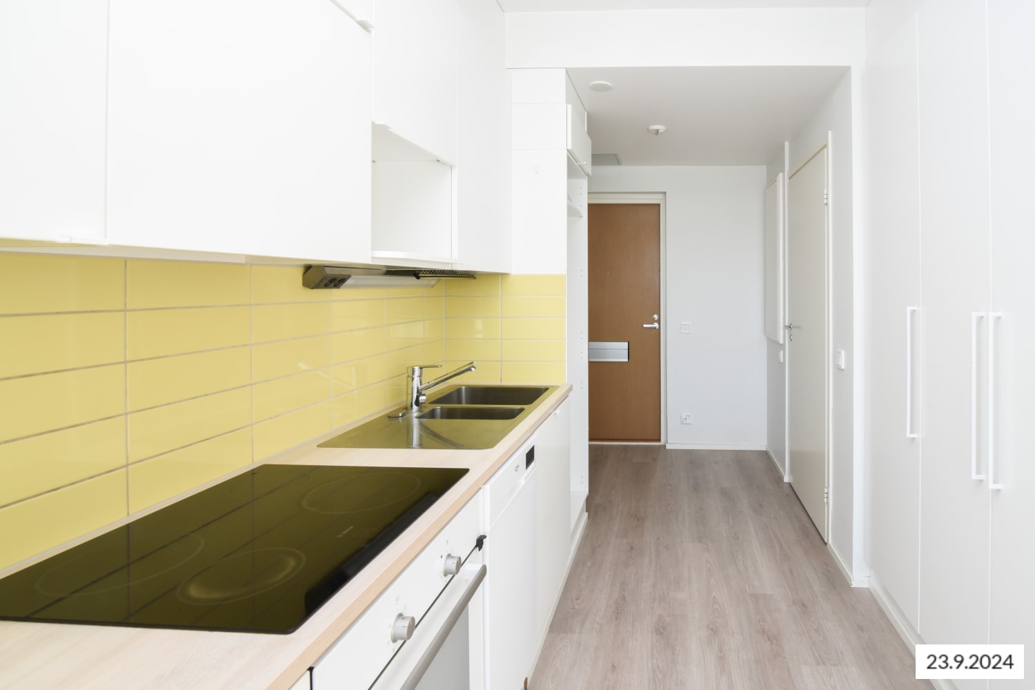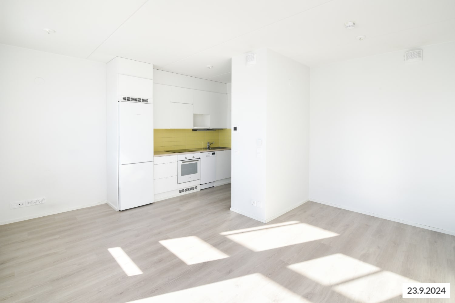 The building has 32 homes on seven storeys. With a balanced mix of studios as well as one-, two- and three-bedroom apartments available, these homes have efficient and spacious layouts plus a selected range of interesting solutions with plenty of character. The material selections are modern and suitable for many tastes with their light and muted pale grey tones. The kitchens feature a ceramic cooker, built-in oven, dishwasher and cold appliances. The bathrooms have space for a washing machine and dryer.