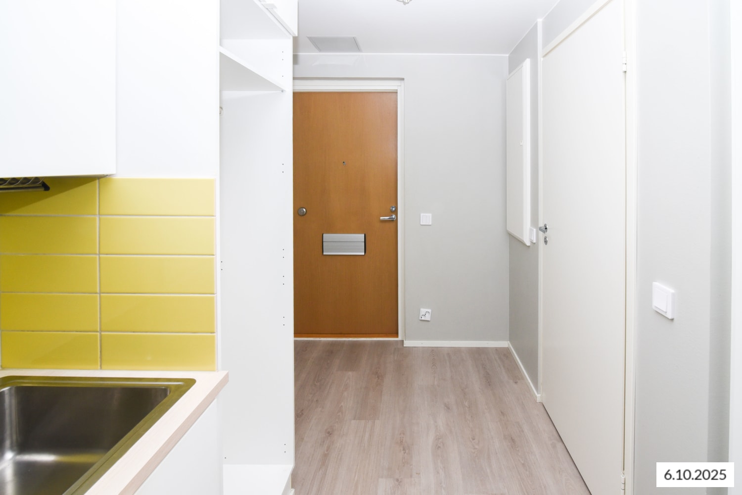 The building has 32 homes on seven storeys. With a balanced mix of studios as well as one-, two- and three-bedroom apartments available, these homes have efficient and spacious layouts plus a selected range of interesting solutions with plenty of character. The material selections are modern and suitable for many tastes with their light and muted pale grey tones. The kitchens feature a ceramic cooker, built-in oven, dishwasher and cold appliances. The bathrooms have space for a washing machine and dryer.