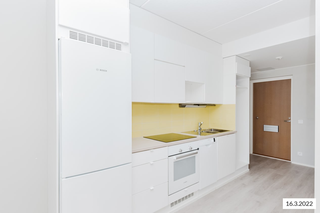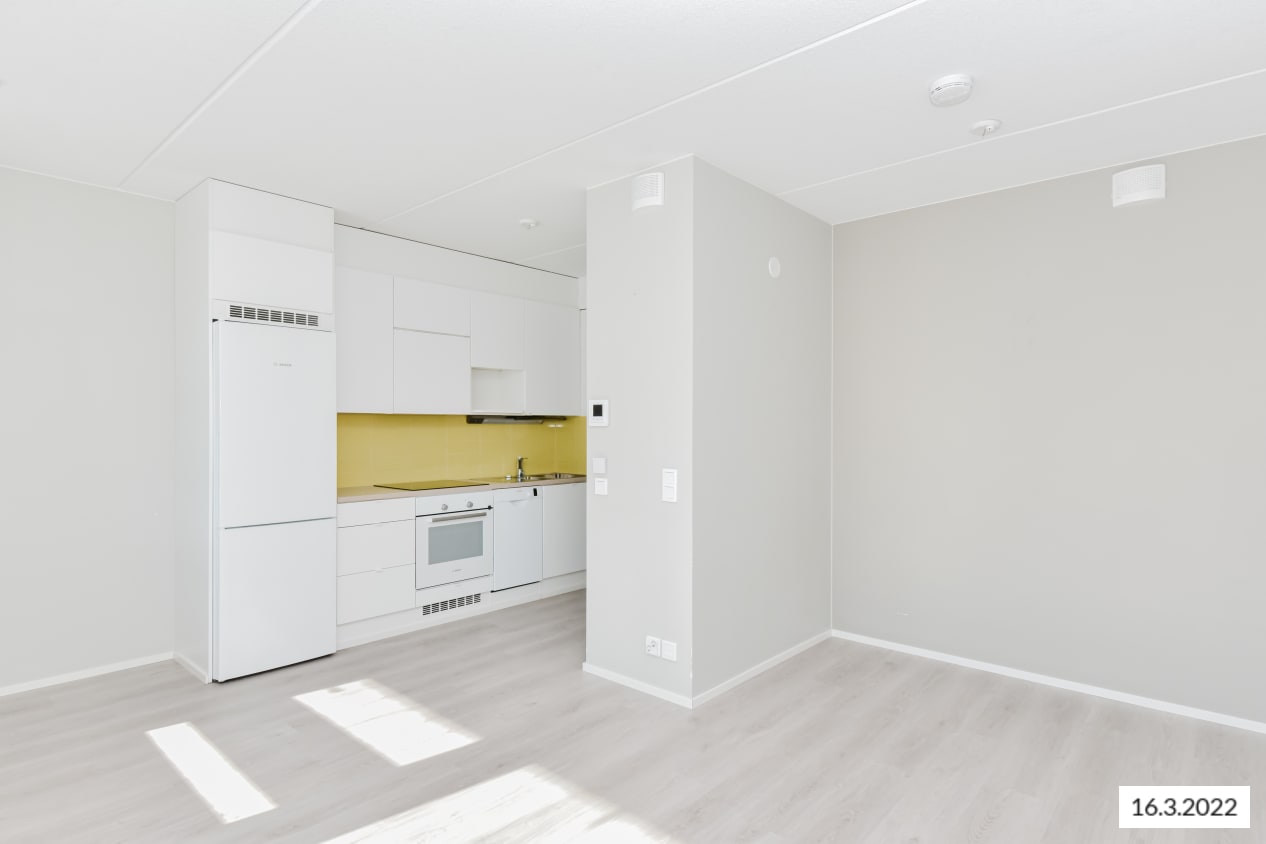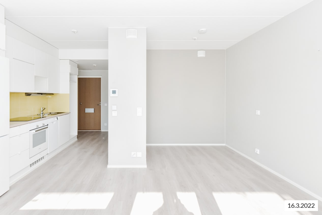The building has 32 homes on seven storeys. With a balanced mix of studios as well as one-, two- and three-bedroom apartments available, these homes have efficient and spacious layouts plus a selected range of interesting solutions with plenty of character. The material selections are modern and suitable for many tastes with their light and muted pale grey tones. The kitchens feature a ceramic cooker, built-in oven, dishwasher and cold appliances. The bathrooms have space for a washing machine and dryer.