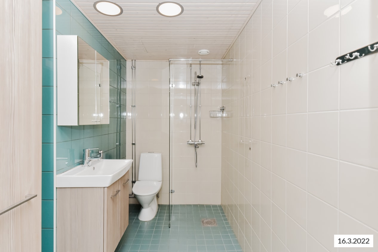 The building’s outdoor equipment, baby carriage and apartment-specific storage units as well as laundry drying room and clubroom are easily accessible on floor 1. There is also a sauna section with a covered cooling-off area on the ground floor. The grounds feature a children’s play area, covered sitting area, apple trees and space for vegetable gardening.