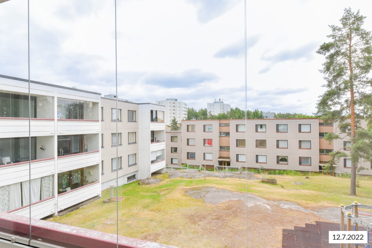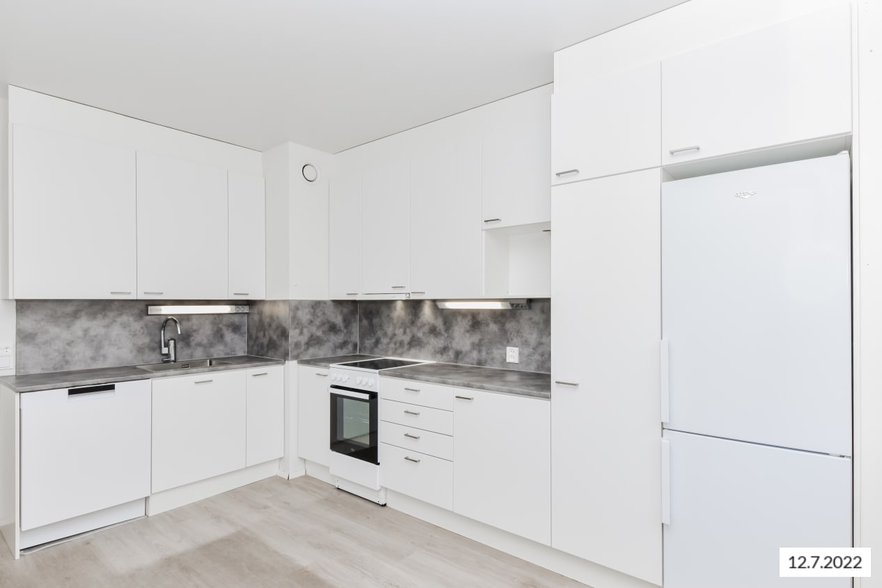 At this building standing on a sloping site next to Soukka library, the units with full kitchens feature balconies and clean layouts. The smaller units with kitchenette are also designed for light and functionality.