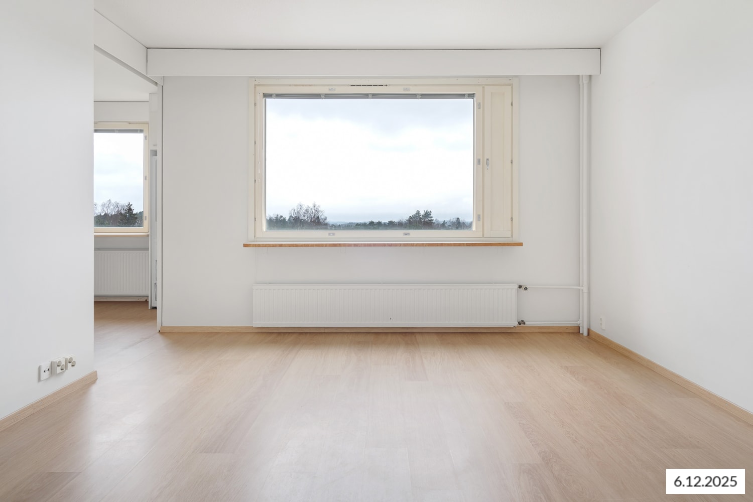 These two tall apartment blocks are located on top of a hill, and apartments exceeding 54 sqm in floor area have a balcony facing southwest. All apartments have a clean and practical layout. Those on the topmost floors have splendid views over the forests and rooftops towards Kivenlahti or towards Helsinki and the sea.