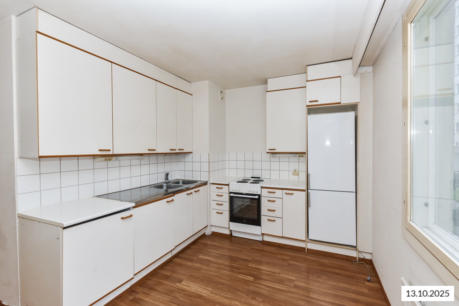 These two tall apartment blocks are located on top of a hill, and apartments exceeding 54 sqm in floor area have a balcony facing southwest. All apartments have a clean and practical layout. Those on the topmost floors have splendid views over the forests and rooftops towards Kivenlahti or towards Helsinki and the sea.