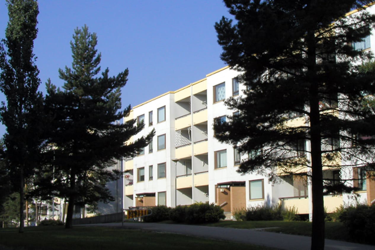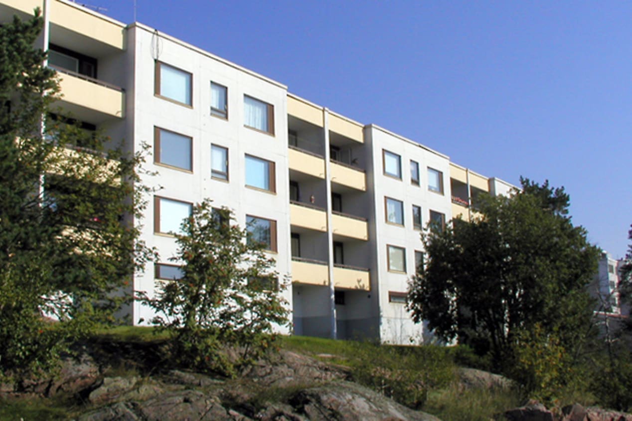 At the end of a peaceful cul-de-sac on a green pine hill, there are four four-story buildings: Soukankaari 11-13.