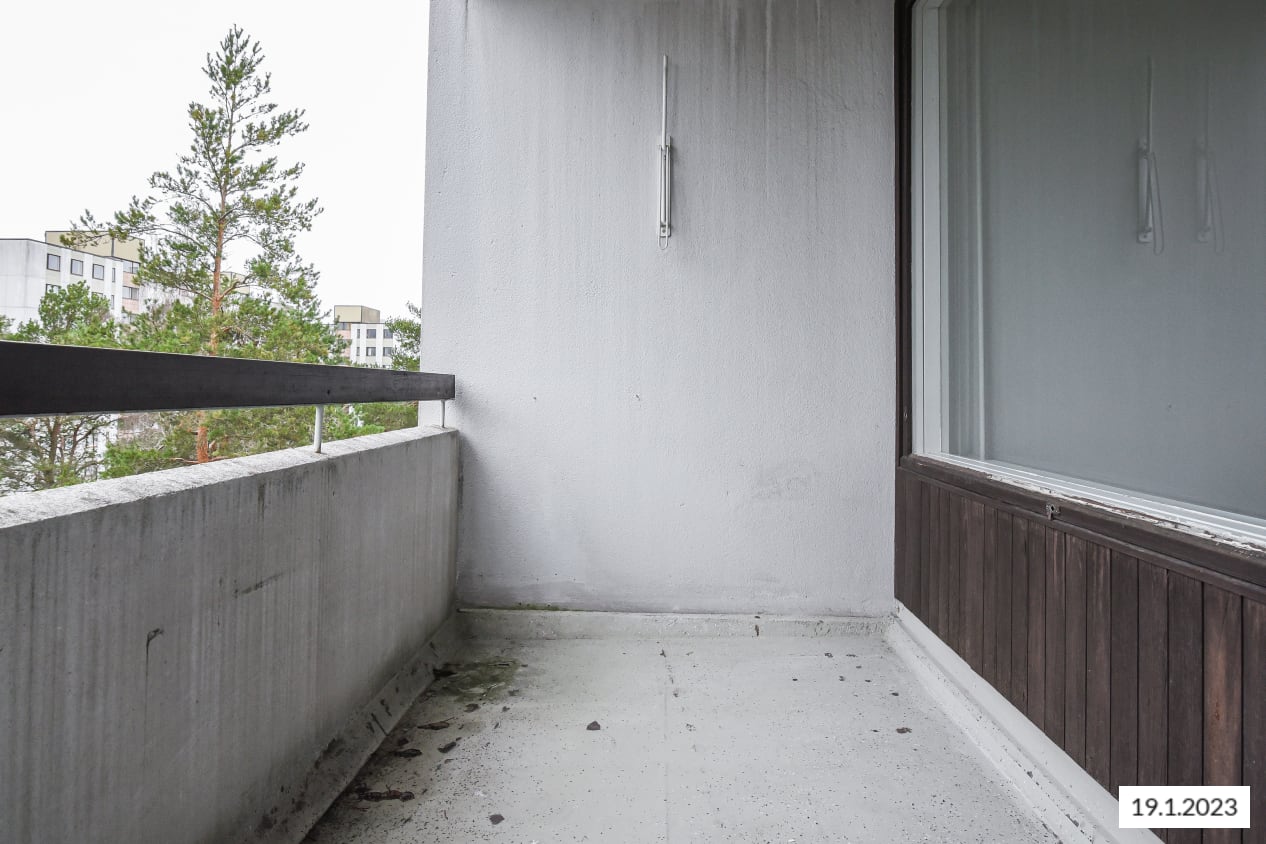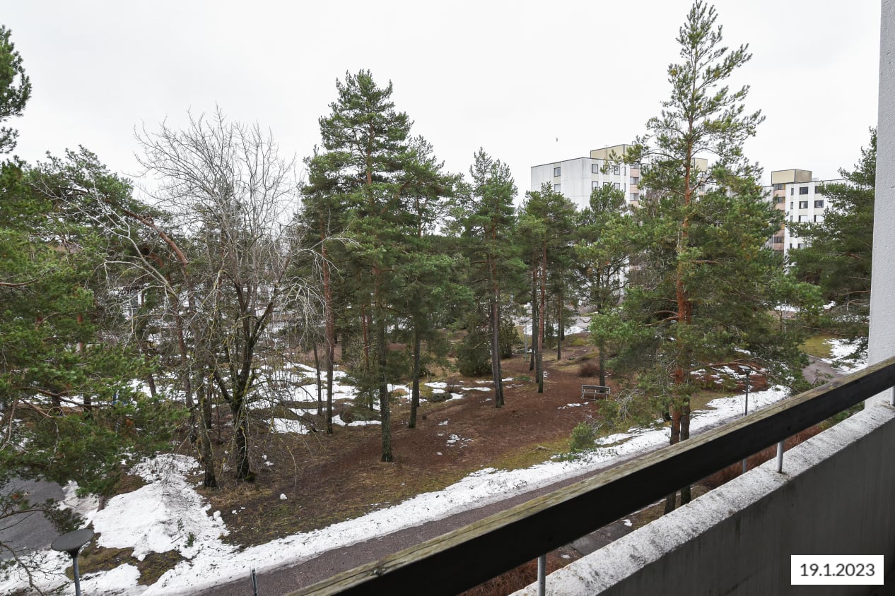 All units at Kaskivuorenkuja 3 have balconies facing either south-southeast or west-southwest and most offer spectacular views over the forests of Espoo all the way to the sea. The units with kitchens at Soukankaari 11-13 have balconies opening from the living rooms and facing south-southeast, while the kitchenettes in the smaller units have windows. All units are bright and spacious.
