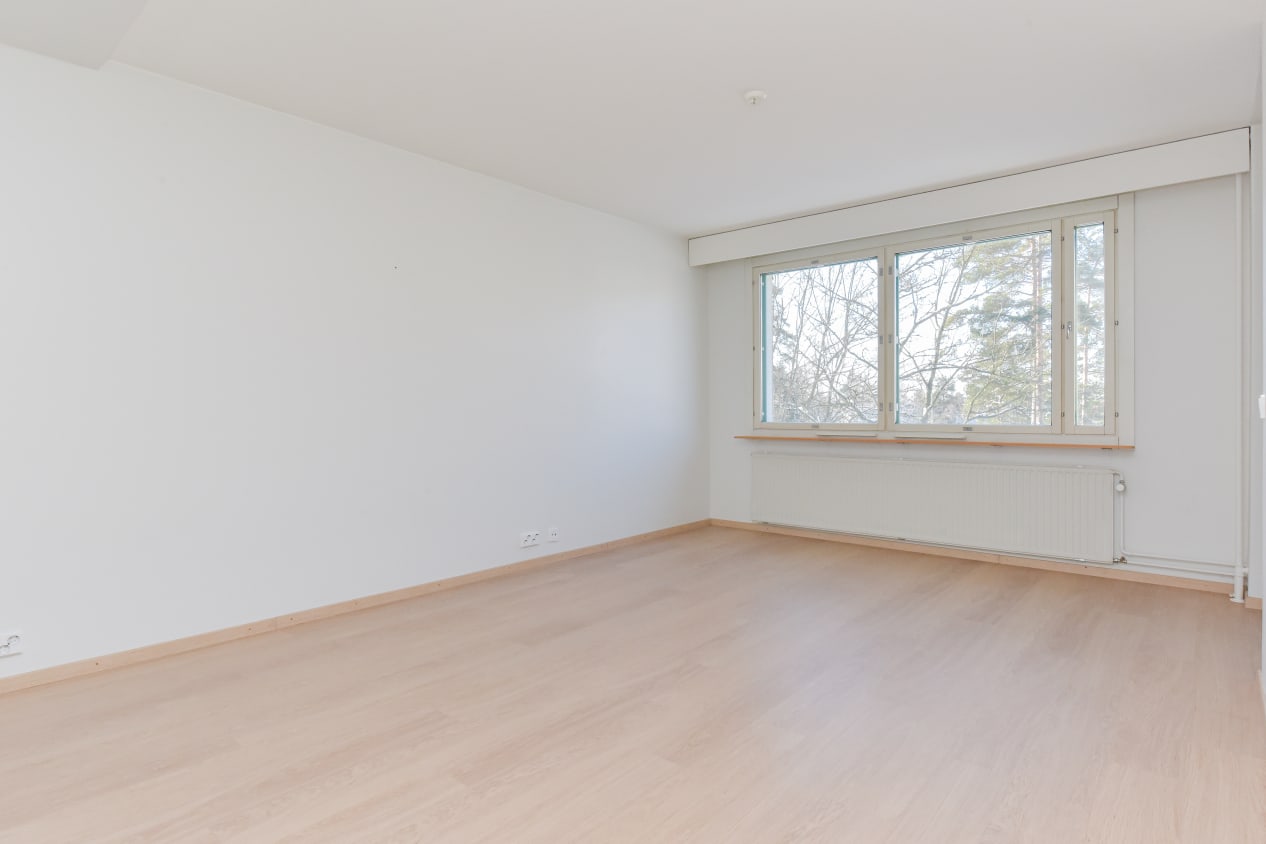 Surface materials in this refurbished 1970s building have been refurbished or replaced. Pleasant and up-to-date, these homes have a large and clearly laid out living room and the larger ones also a separate dine-in kitchen. Except for the studios and smaller one-bedrooms, all units have a glassed-in balcony facing west to the Soukanraitti street side.