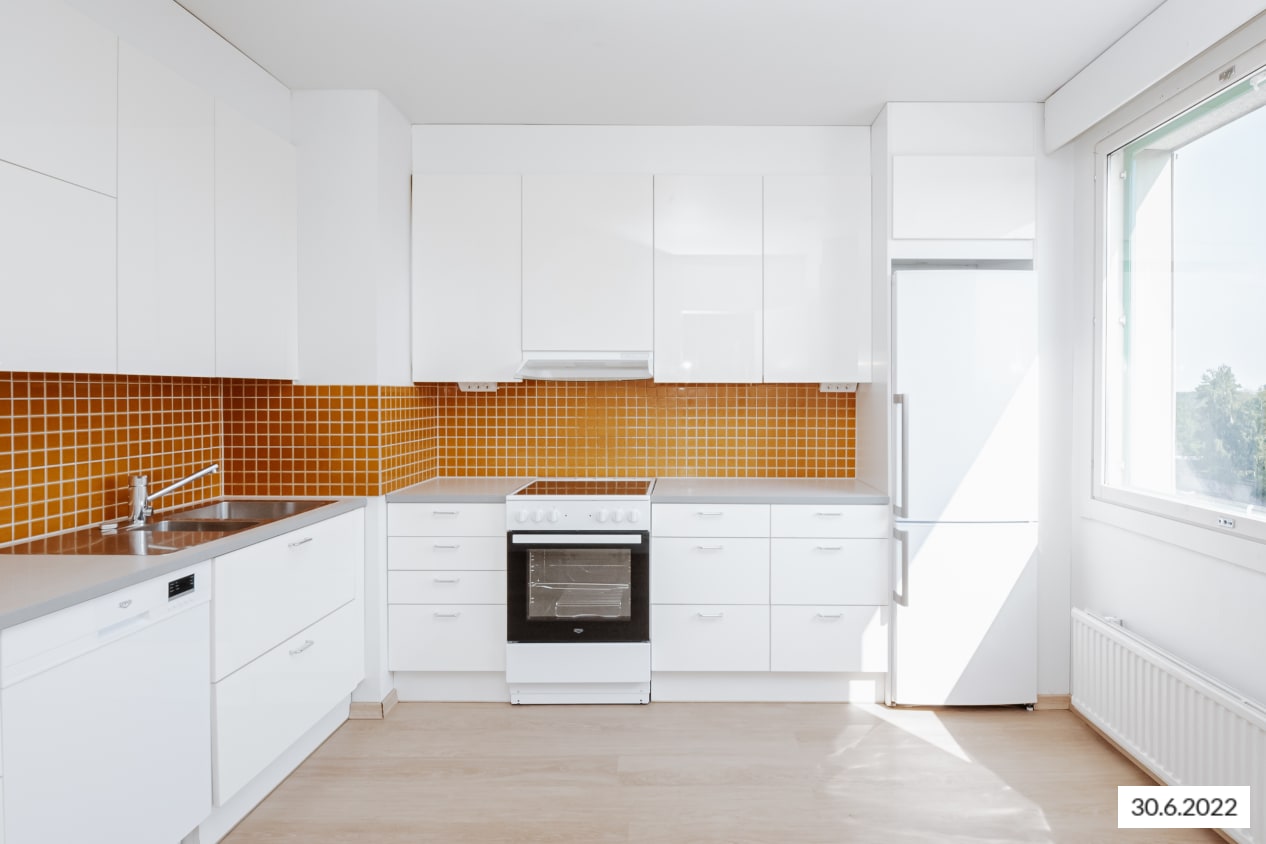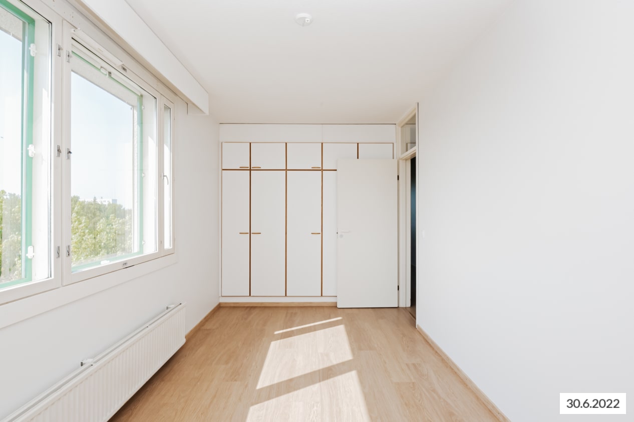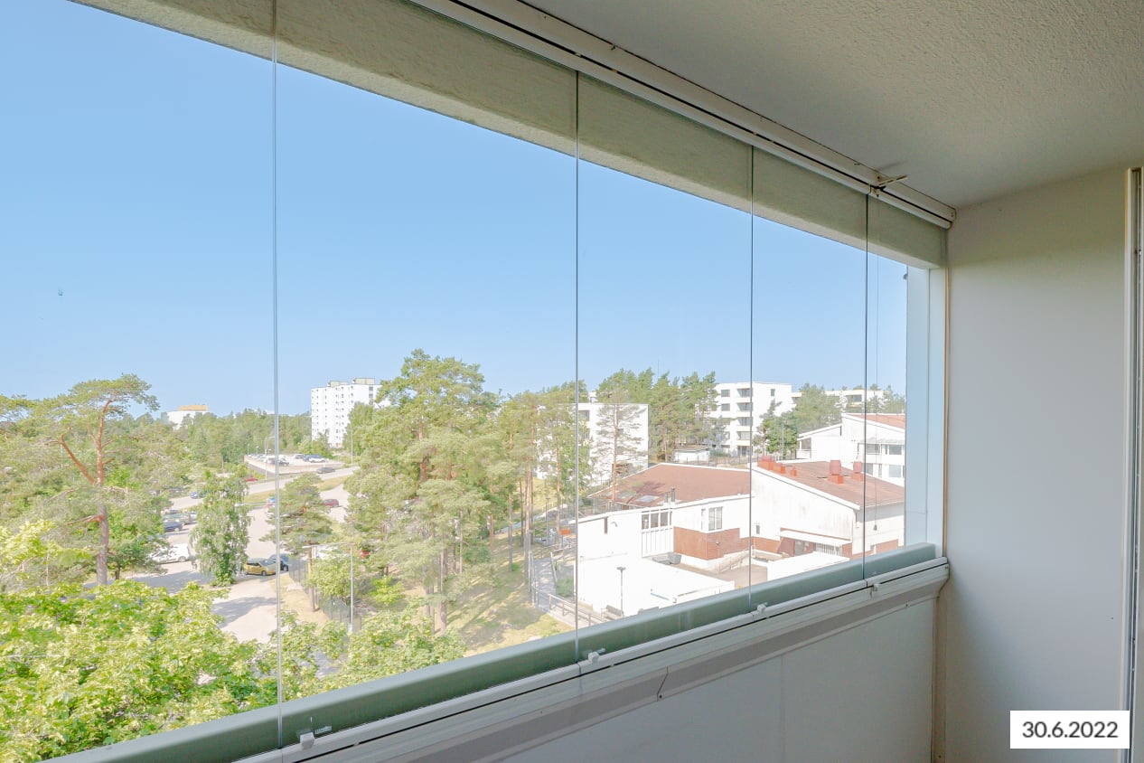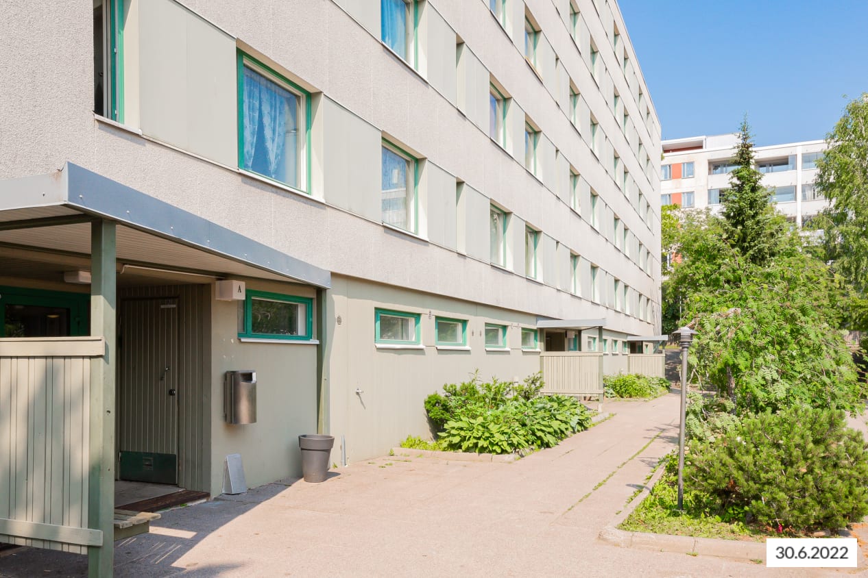 Surface materials in this refurbished 1970s building have been refurbished or replaced. Pleasant and up-to-date, these homes have a large and clearly laid out living room and the larger ones also a separate dine-in kitchen. Except for the studios and smaller one-bedrooms, all units have a glassed-in balcony facing west to the Soukanraitti street side.