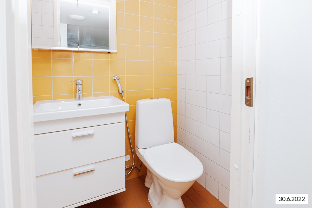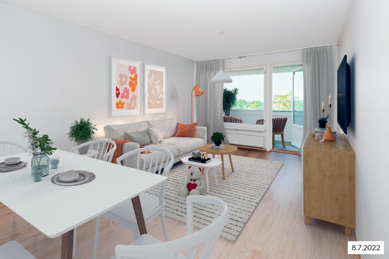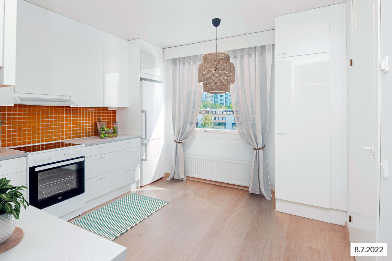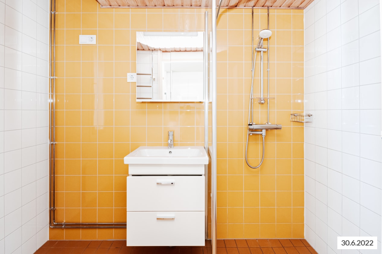 Surface materials in this refurbished 1970s building have been refurbished or replaced. Pleasant and up-to-date, these homes have a large and clearly laid out living room and the larger ones also a separate dine-in kitchen. Except for the studios and smaller one-bedrooms, all units have a glassed-in balcony facing west to the Soukanraitti street side.