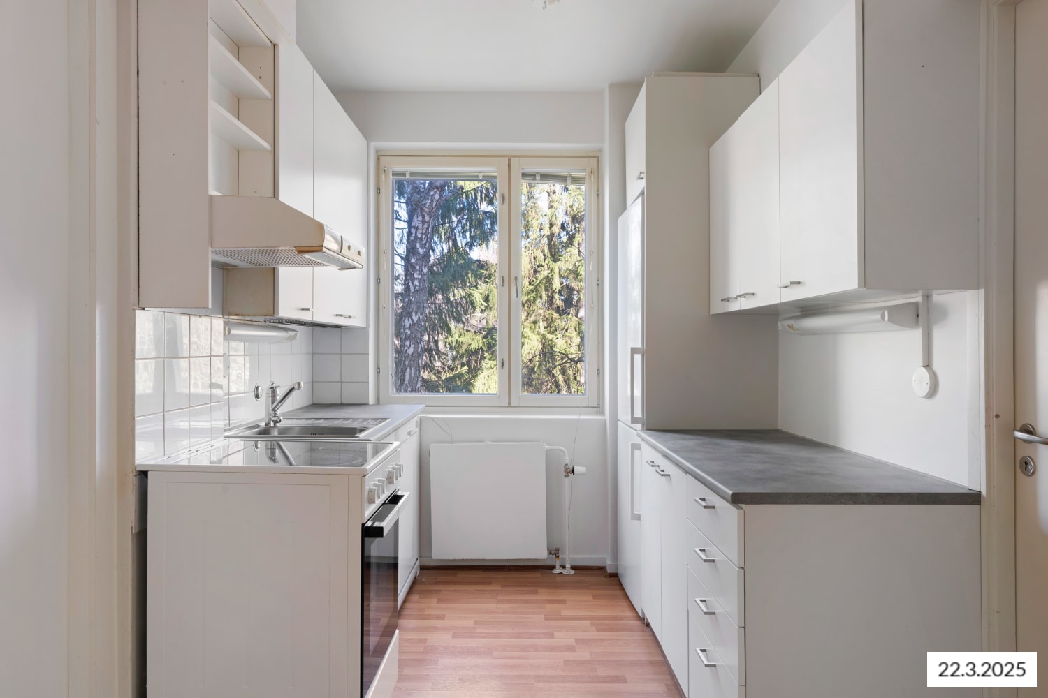 This building in an attractive and peaceful setting less than 10 minutes from the centre of Tapiola contains comfortable and practical homes. The units, except for the studios, feature east or west facing balconies and all bathrooms have washing machine hook-ups.