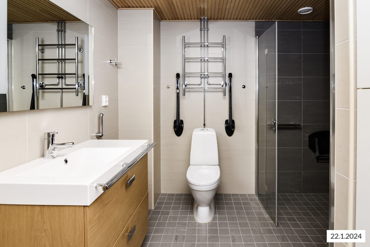 The needs of ageing residents are taken into consideration in the design of these beautiful and atmospheric homes. For example, the bathrooms come with assistive devices matching the decor. All units have a glassed-in balcony and all excluding a few one-bedrooms also have a private sauna. The apartments and common areas are accessible, with safety and security increased further by the automated water sprinkler systems and door phones. Lifts are equipped with handrails and folding seats and there is direct interior access from the car parking facility to your front door.
