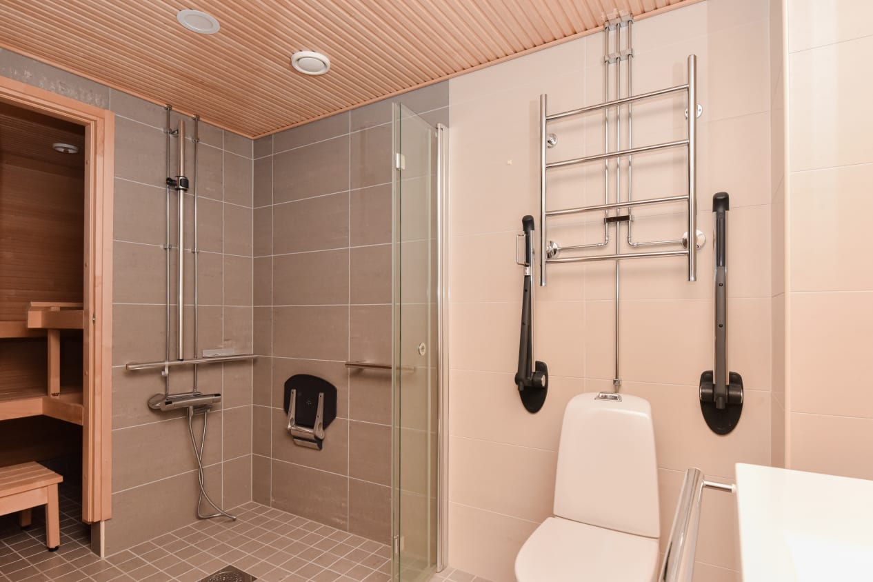 The needs of ageing residents are taken into consideration in the design of these beautiful and atmospheric homes. For example, the bathrooms come with assistive devices matching the decor. All units have a glassed-in balcony and all excluding a few one-bedrooms also have a private sauna. The apartments and common areas are accessible, with safety and security increased further by the automated water sprinkler systems and door phones. Lifts are equipped with handrails and folding seats and there is direct interior access from the car parking facility to your front door.